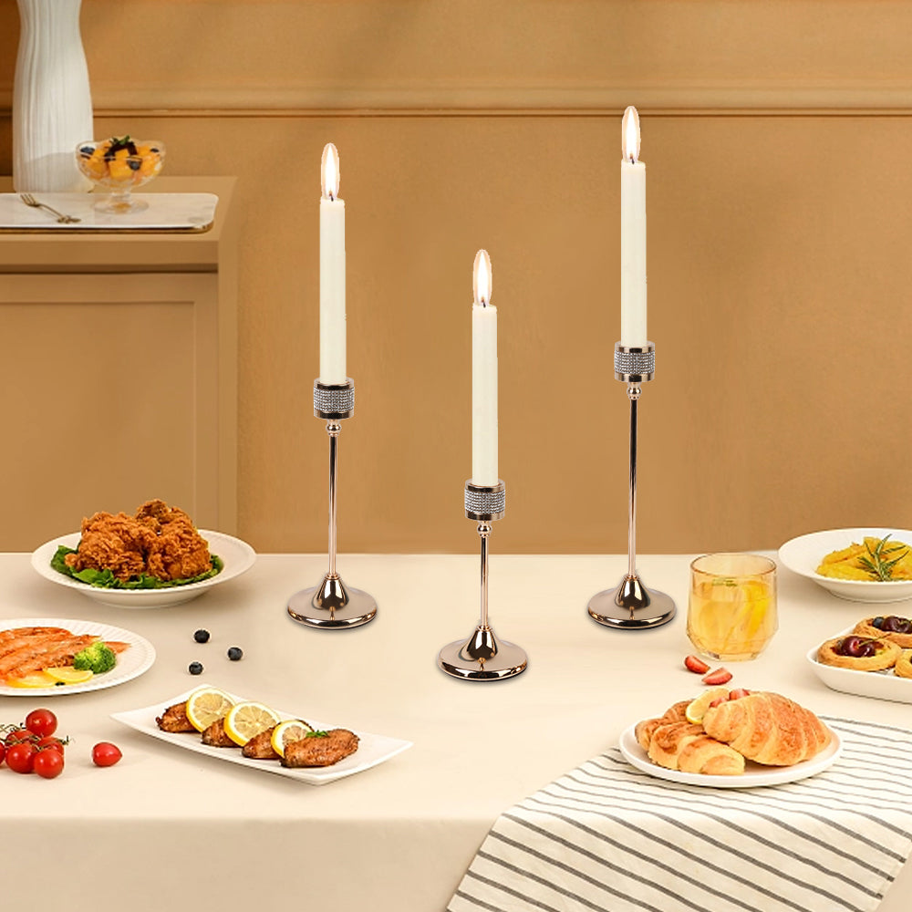 3 Pcs Candlestick Holder Metal Decorative Candle Holder for Taper Candle for Fireplace Mantel Dining Table - Gold
