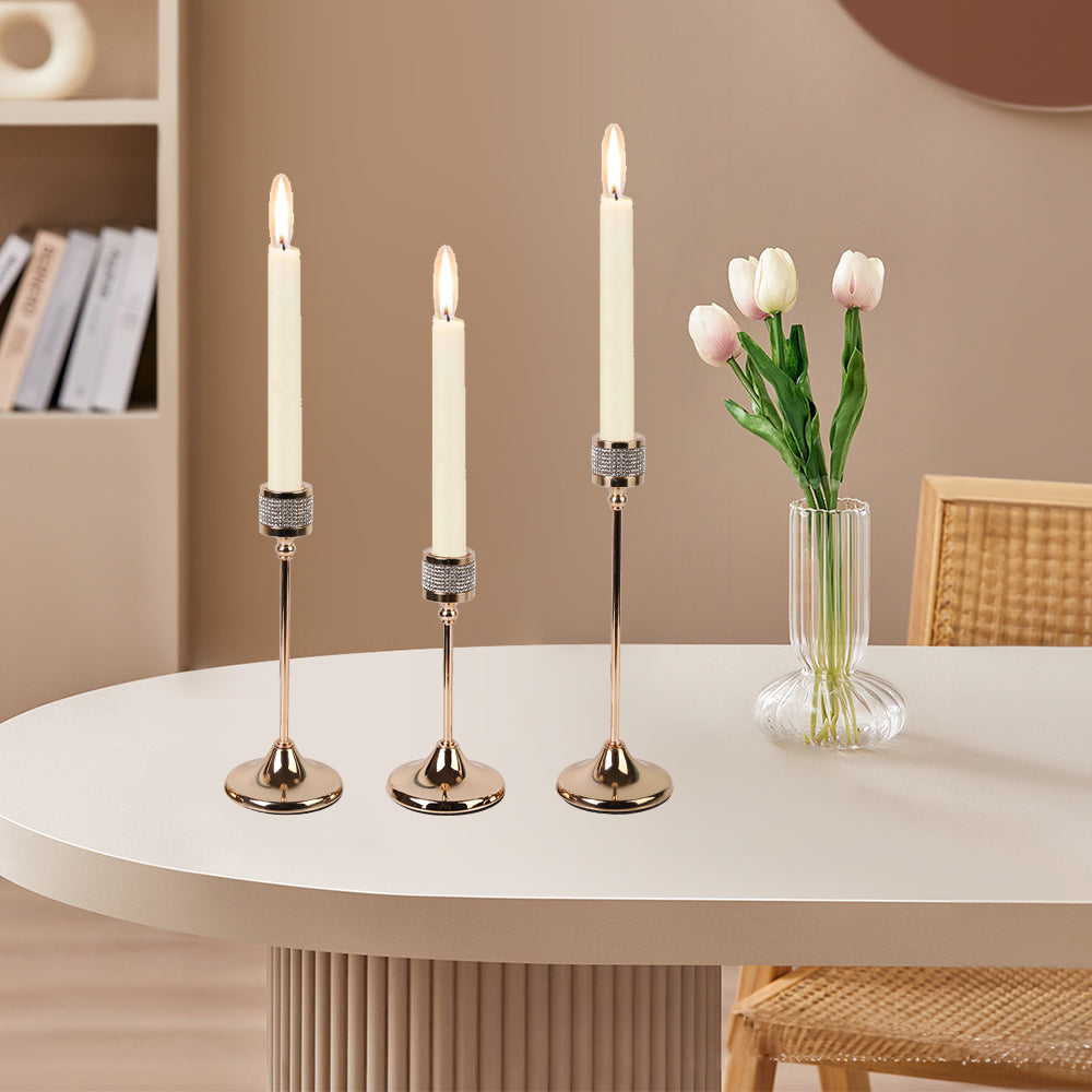 - Assorted Candle Holders: set of 3 candle stick holders, include 3 assorted heights, 14.5cm, 18.5cm, 21.5cm.