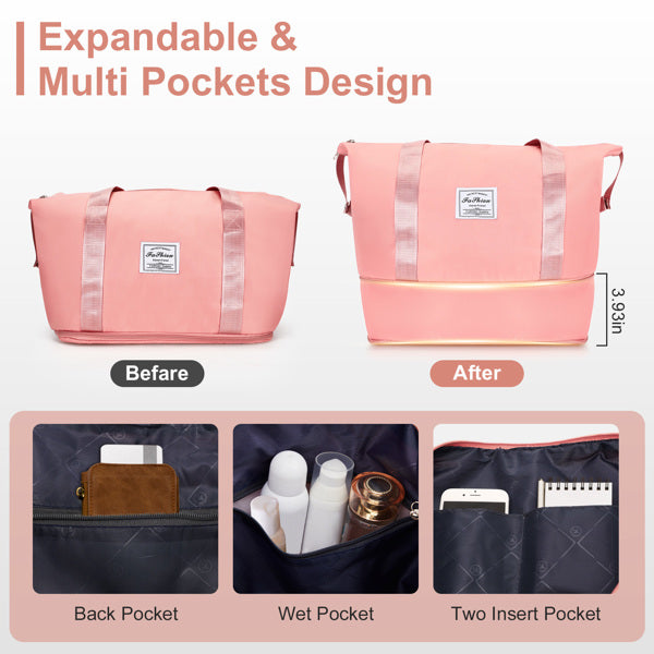 ✔ Spacious & Organized – Includes a large 30L hand carry bag + compact 3L crossbody bag for quick access to toiletries or daily essentials.
