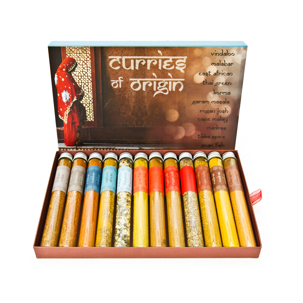 This extraordinary selection box features 12 curry seasonings, showcasing popular Indian spices, as well as African and Asian curry varieties: