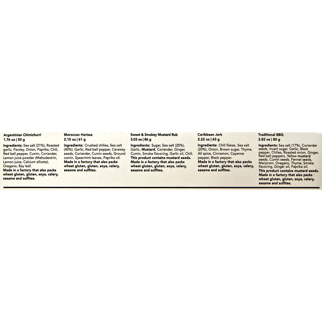 - Retro design showcasing different meat spices and all wrapped up with a handy shaker
