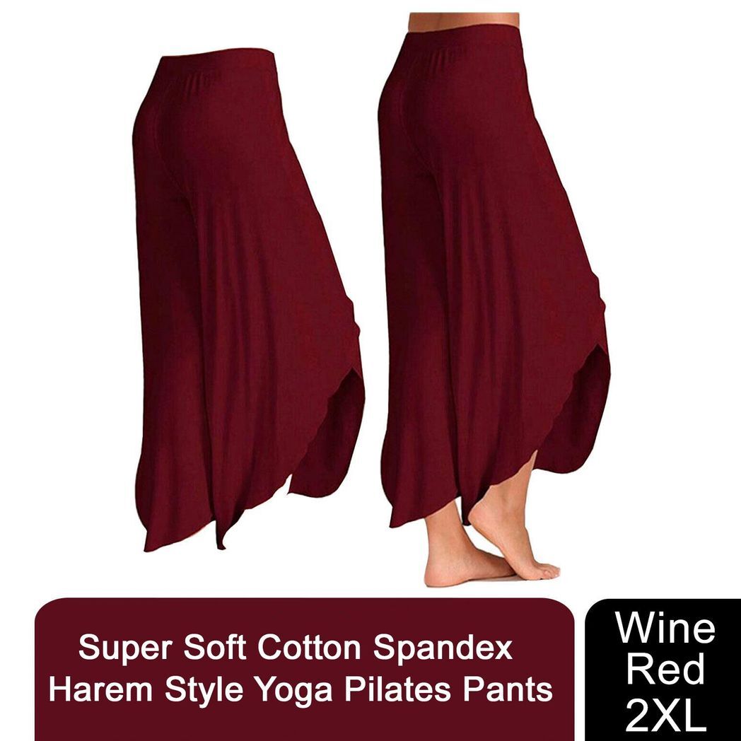 Womens Harem Yoga Pants, Ladies Baggy Leggings, Small To 3xlThis Women's Yoga Pants with super soft fabric are made of 95% Rayon and 5% Spandex. They are featured in a stylish design and practical use. Wide trouser legs and ultra-comfortable fabric ensure freedom of movement and make you unrestricted. They are suitable for women who like doing yoga, Pilates, jogging, or other indoor or outdoor exercise.Key Features :The material is super soft and comfortable, just like the second skin covers you.A comfy and casual lounge pants great for yoga, Pilates, sporting, vacation, beach, sleep, lounge around, and relaxing at home.High-quality material and elastic waistband, sweat-wicking, and breathable let you have a comfortable wearing experience.Stretchy fabric makes you feel comfortable and is not restricted when you wear it.It fits any body type and can be used as a workout or as casual wear or even sleepwear.Specification :Materials: 95% Polyester and 5% Cotton.Available Colors: Black, Grey, Wine Red, White, Brown, Or Green.Sizes: Small (S), Medium (M), Large (L), Extra Large (XL), Double XL (XXL), Three XL (XXXL)