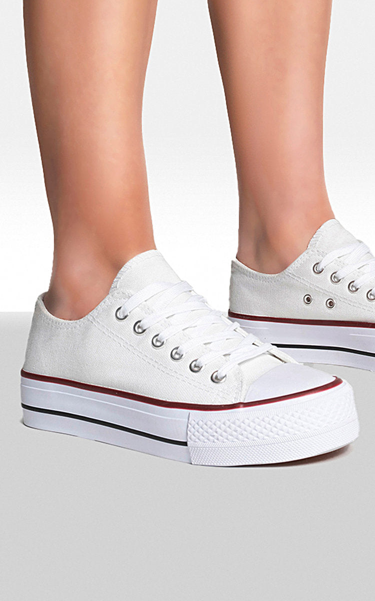 Mikayla low top Canvas platform trainers are about to become your new go-to shoes for every look! Oozing with street style and incredible comfort, you can stay ahead of the trend with ease. These cute trainers feature a comfy platform sole, making them perfect for all-day wear.