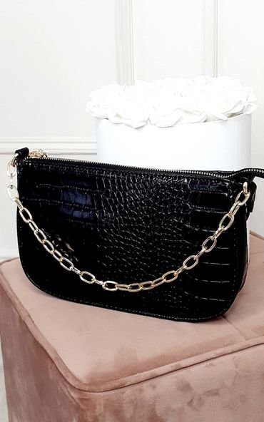 Obsessed with our KIRSTY bag! Featuring gold chain strap, all over croc print material and zip fastening. Style with jeans and a cute top for a casual every day look , or pair with a little black dress for a chic evening look.