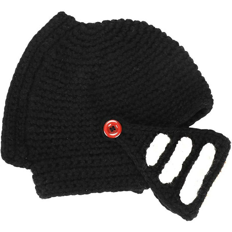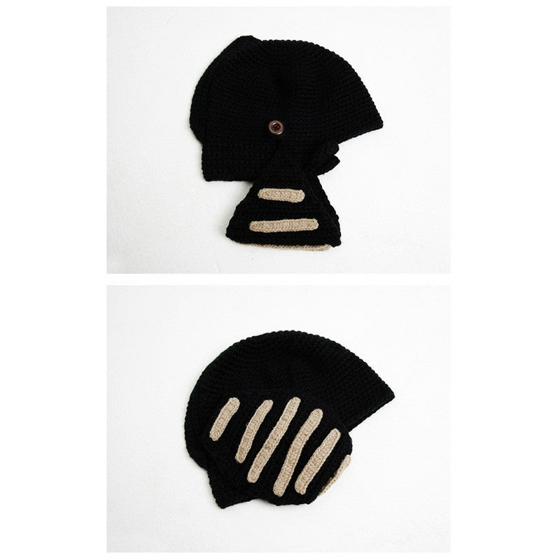Crochet Knit Roman Knight Helmet Beanie Hat Cap with Face Mask for Halloween Cosplay - Black
