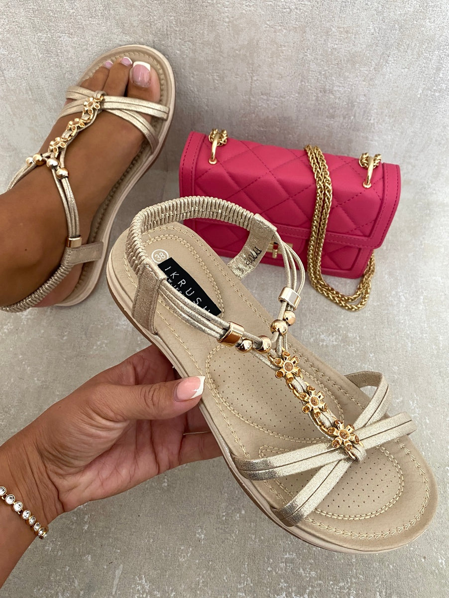 Step up your summer style with the Mira Decorative Pearl Floral T-Strap Flat Sandals. These cute sandals feature pretty pearl and floral details, making them perfect for any casual outing. Comfy and stylish, they're a great addition to your warm-weather wardrobe.