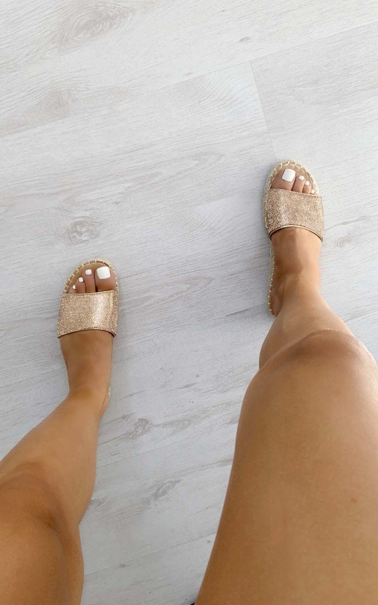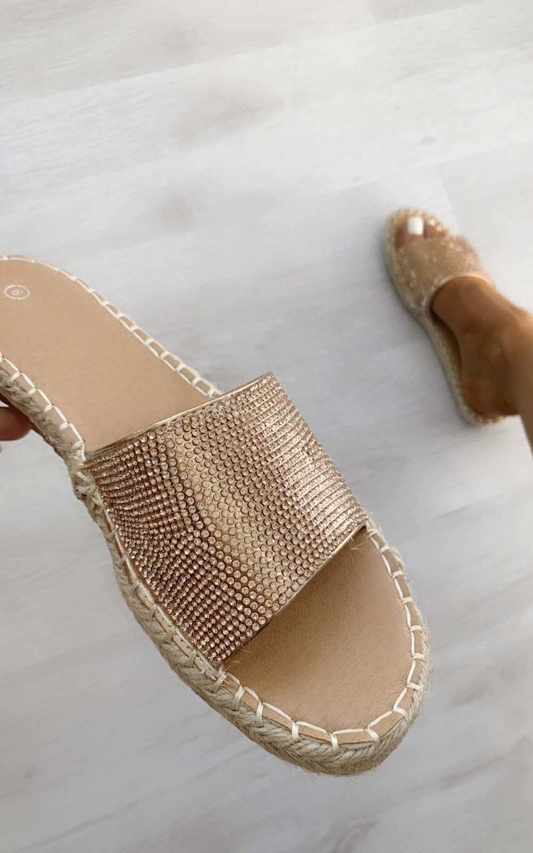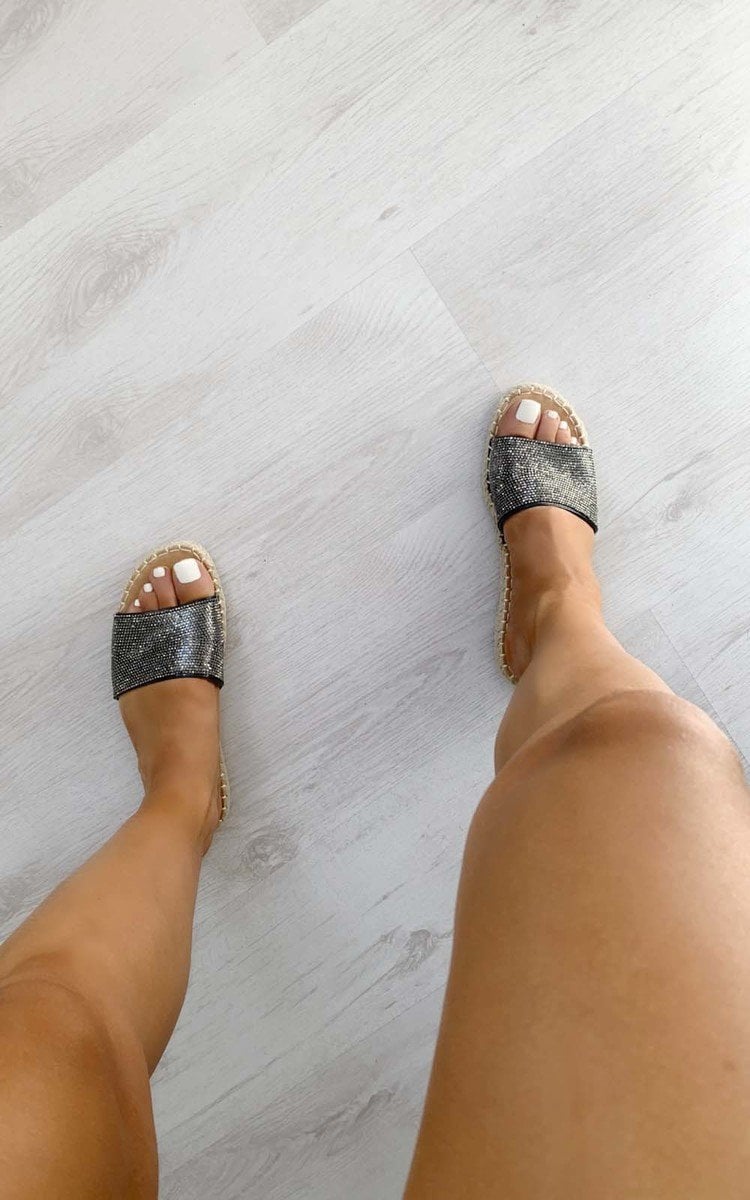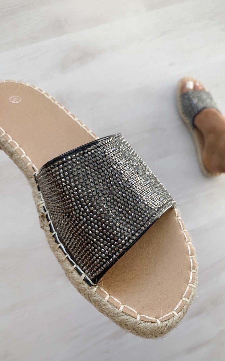 our SHANNON sandals feature diamante embellishment and slip on slider style with rafia sole to give that beach perfect look. Perfect for your summer vacay, add a pair of denim shorts and floaty top.