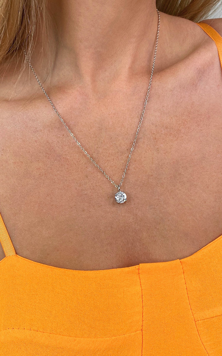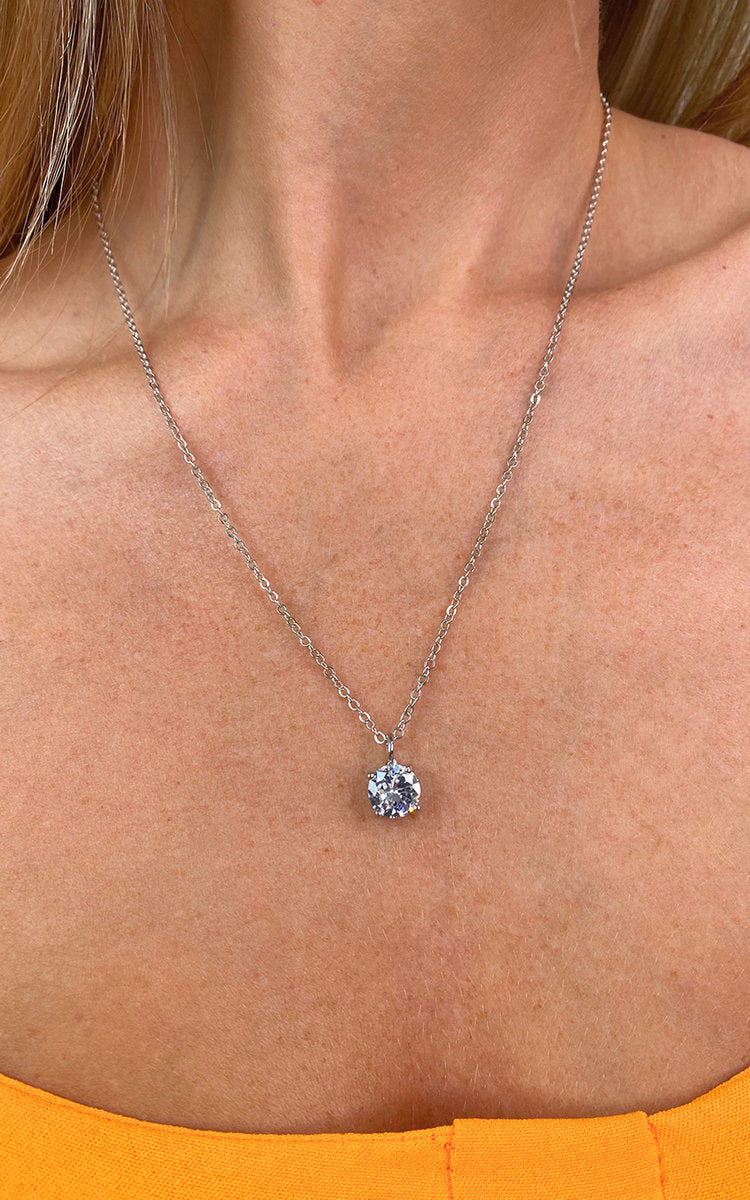 Introducing the Miah Diamante Solitaire Necklace, a stunning piece that is sure to turn heads. This necklace features a single solitaire diamond set in a simple but beautiful setting. The pendant hangs from a delicate chain, and the whole piece sparkles and glitters in the light. A perfect gift for someone special, or for yourself. It comes in a luxurious presentation box, and with free shipping and returns, it couldn't be easier to order. So don't wait any longer, treat yourself or someone you love to this gorgeous necklace today.