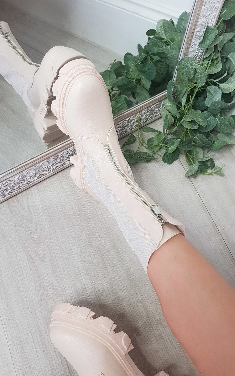 Strut your stuff in style this winter with these chic Quinn faux leather boots. The boot features a contrast zip detail, as well as an extreme platform sole for extra height. Made from high quality materials, these winter warmers are perfect for big nights out or days shopping.