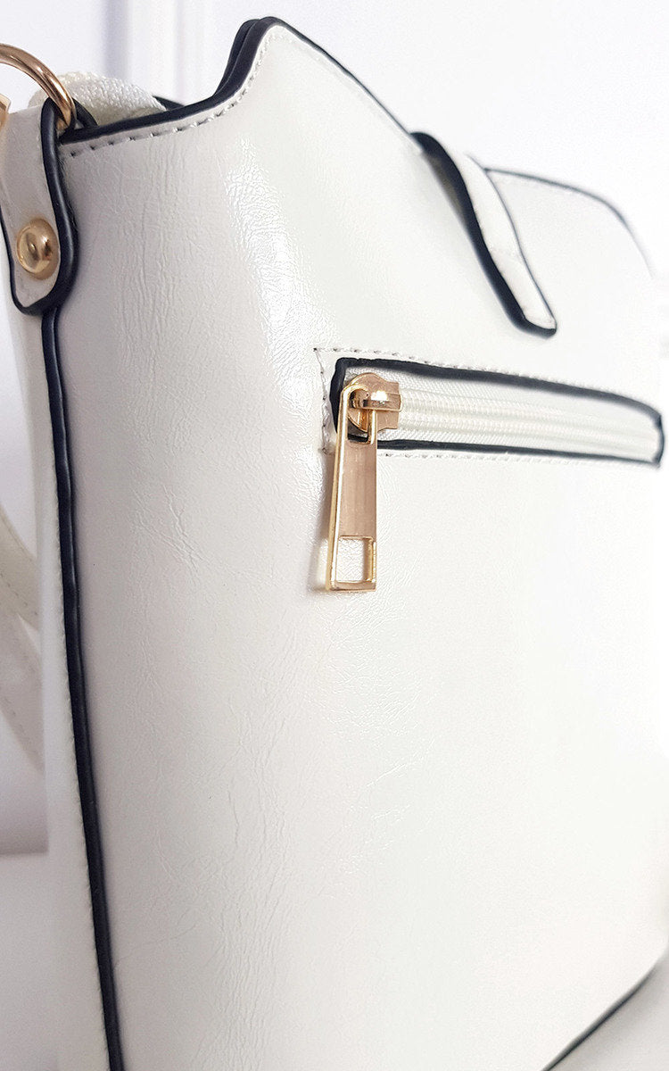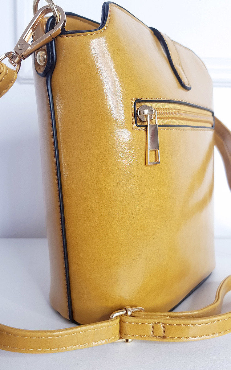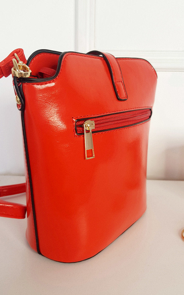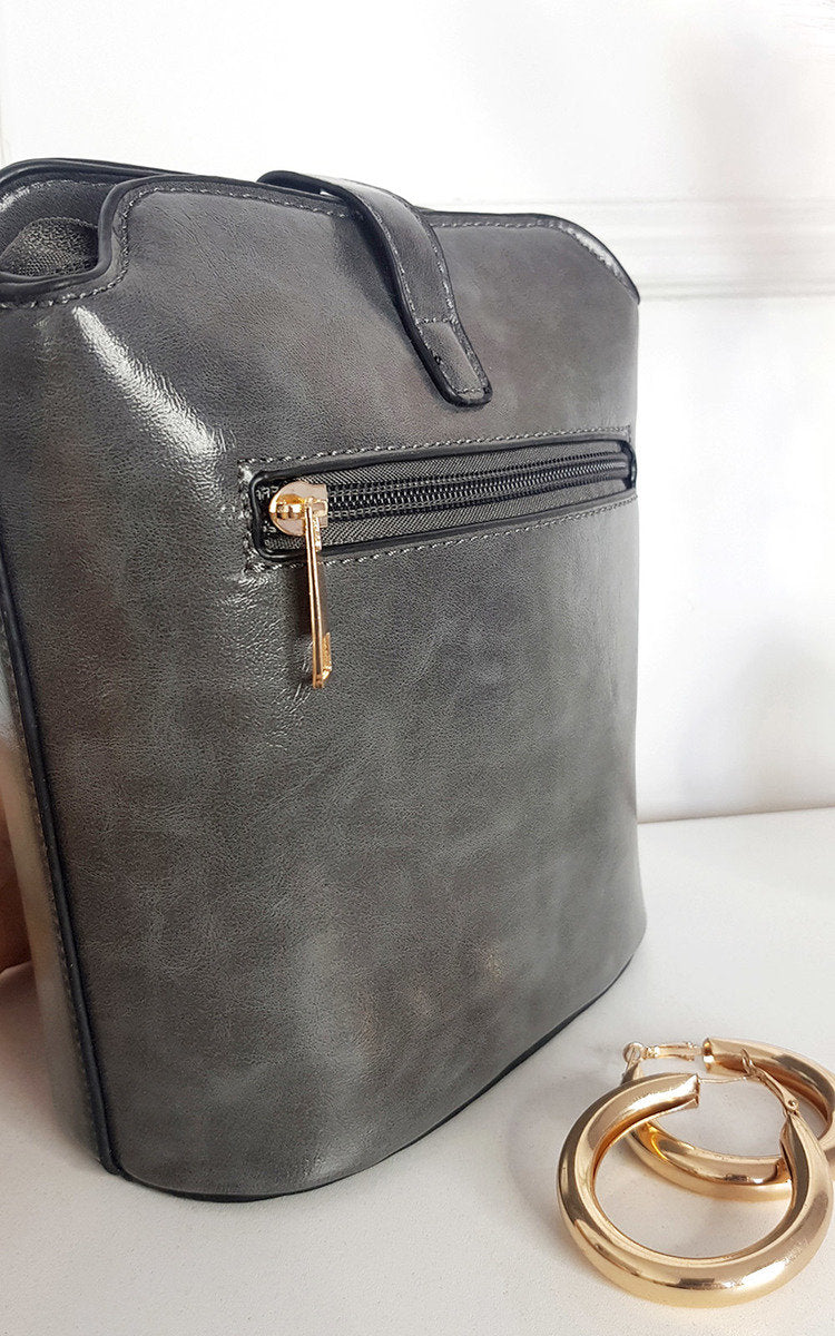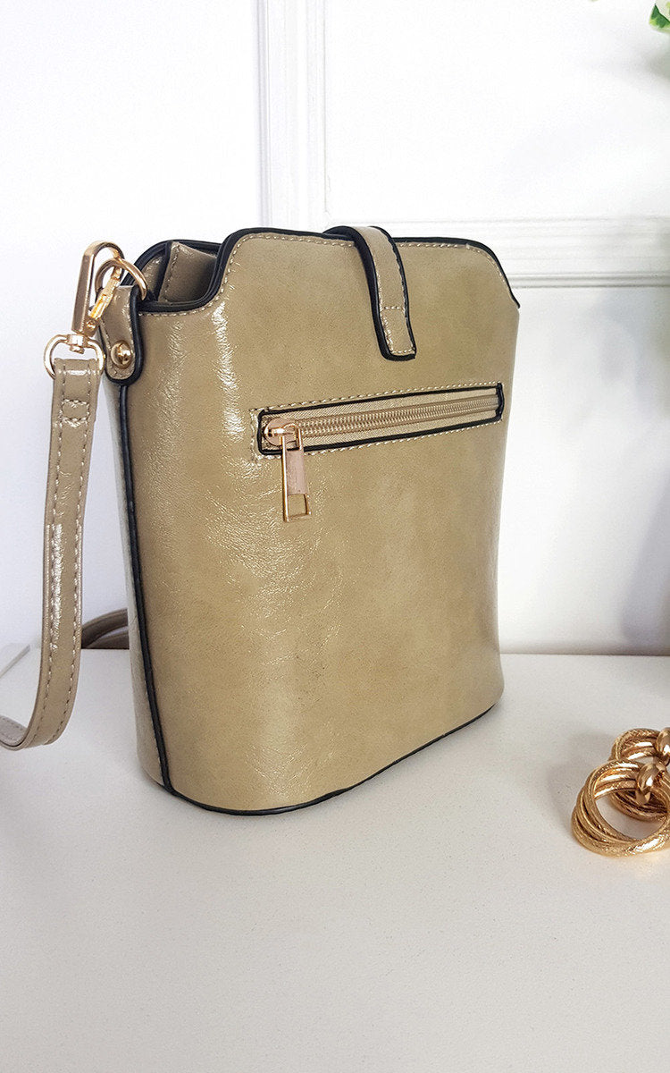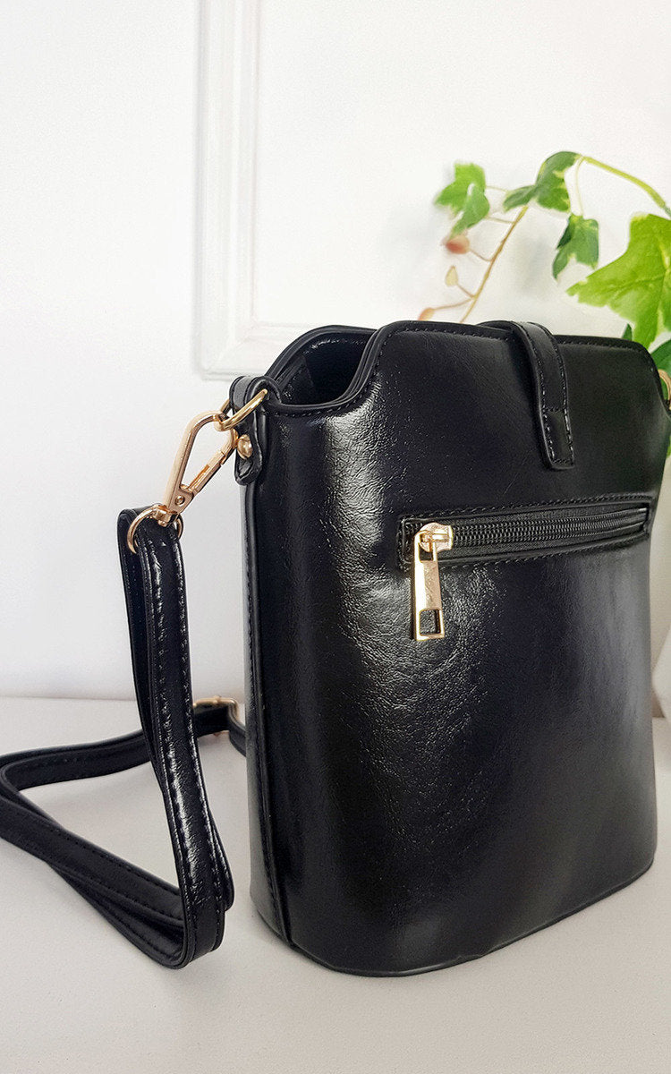 Keep everything organised inside this stylish and sleek faux leather handbag. The gold details, outside zipper and adjustable crossbody strap makes it the perfect accessory for any day, no matter what activities you have planned!