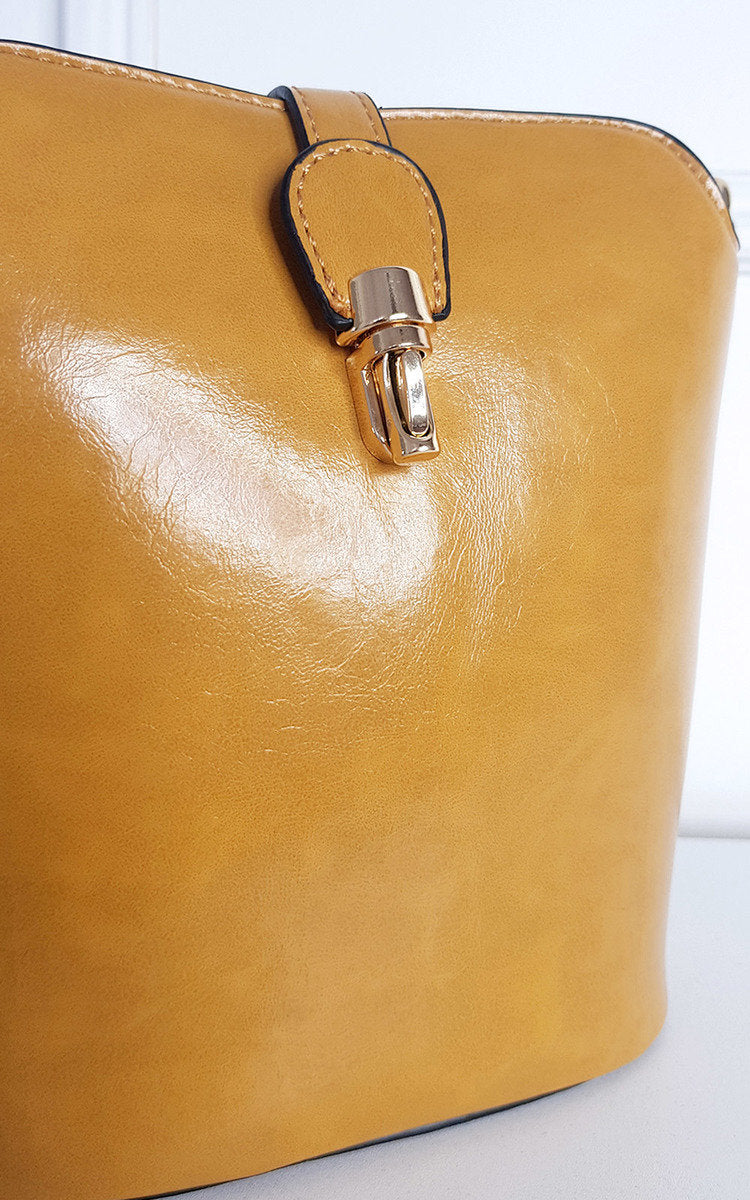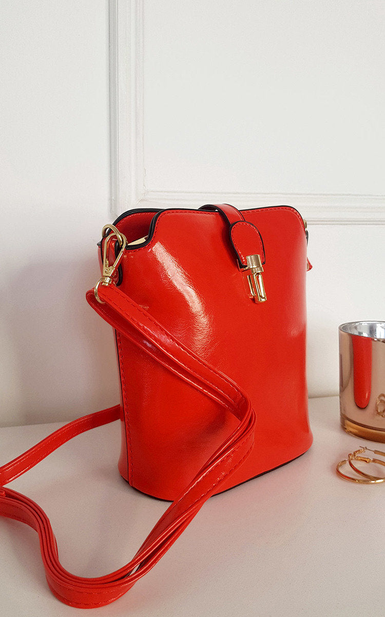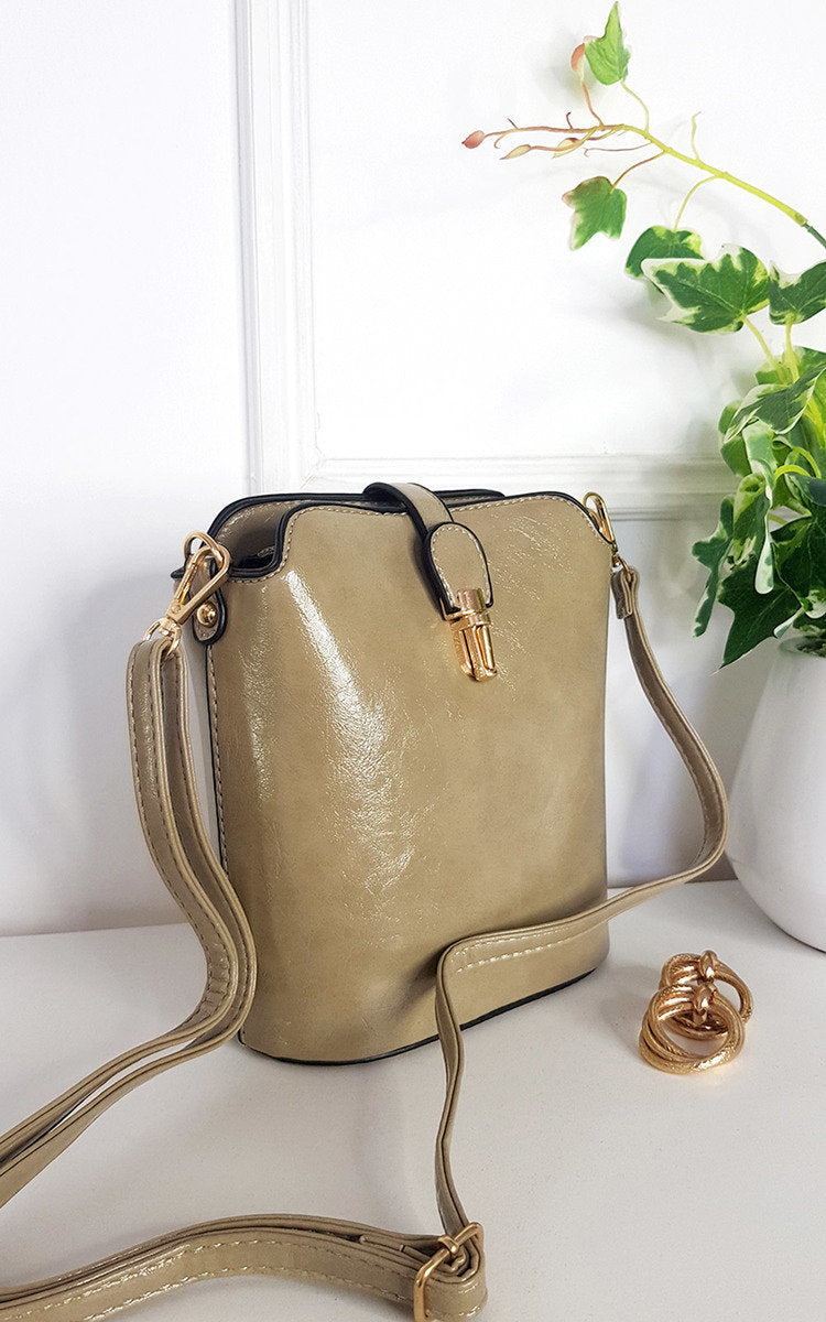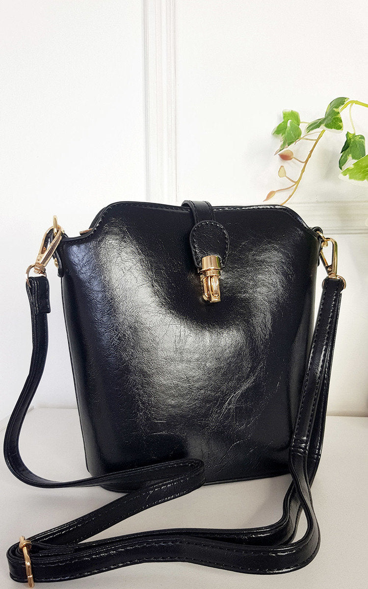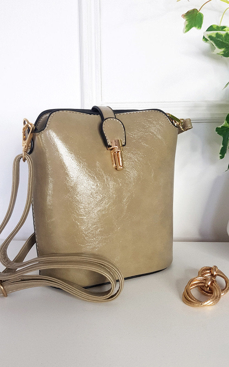 Faux Leather Crossbody Bag with Gold Detail and Adjustable Strap