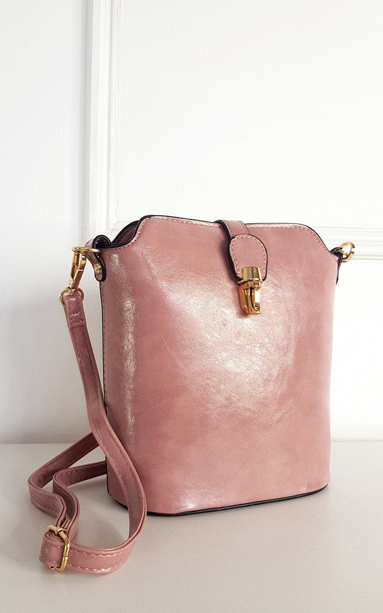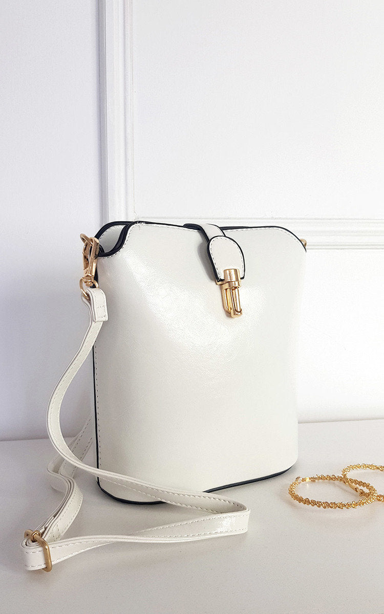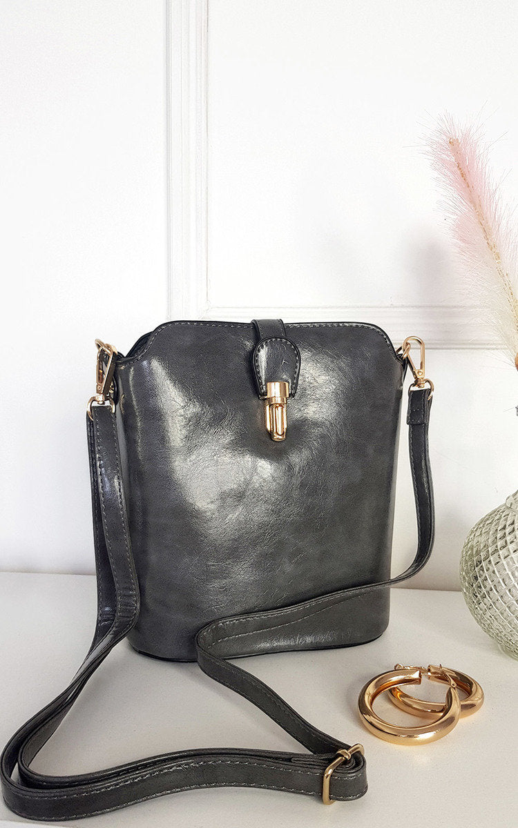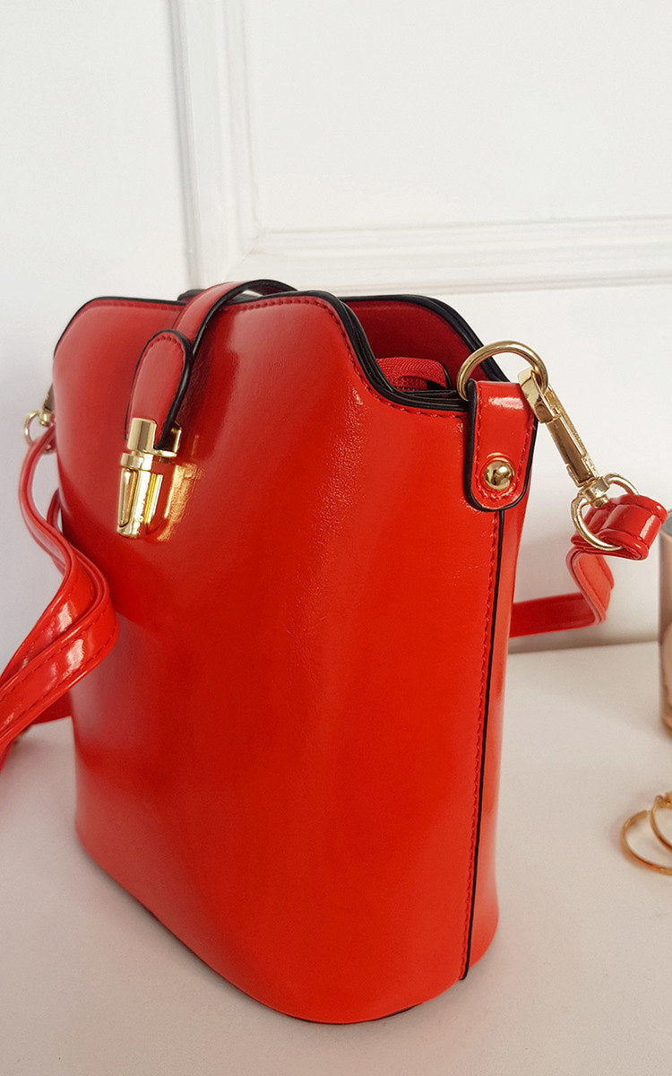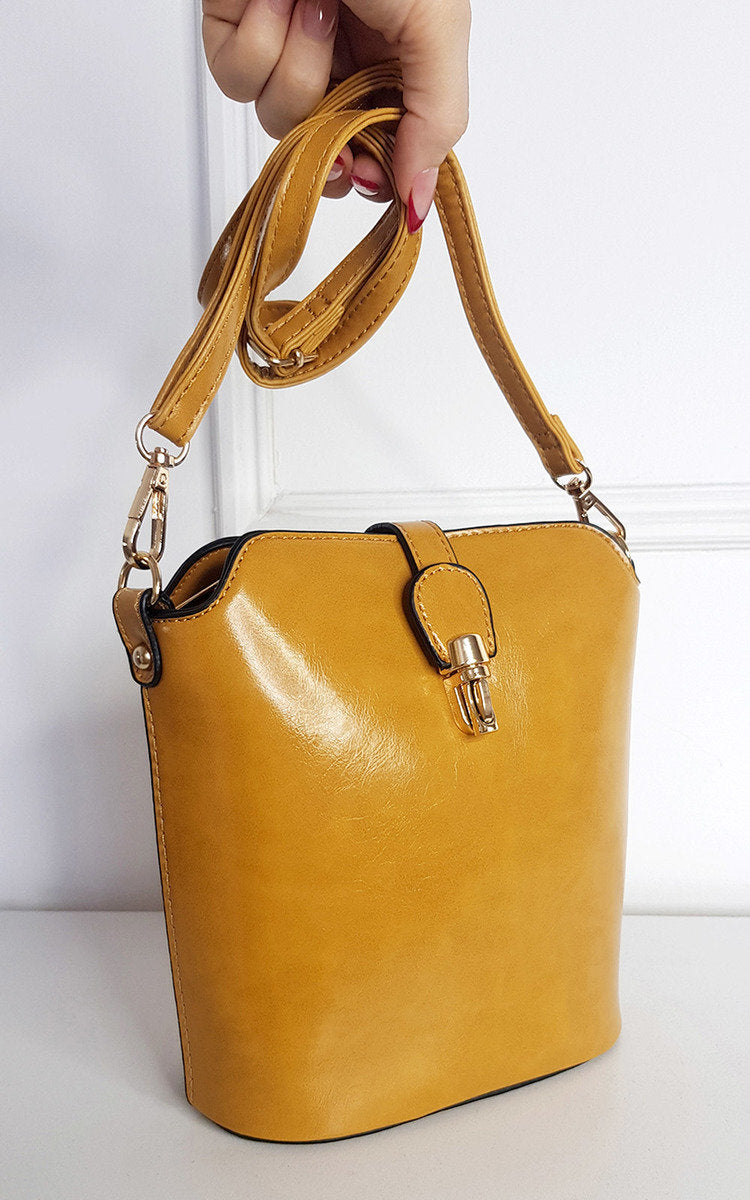 Faux Leather Crossbody Bag with Gold Detail and Adjustable Strap