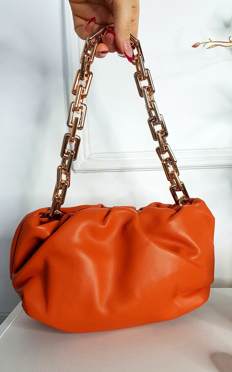 Say goodbye to bulky bags and say hello to the chic Eve Faux Leather Shoulder bag. This fashionable bag is light-weight and roomy enough for everything you need, while making a statement with its faux leather exterior and gold chunky chain handle. The colour choice makes it the perfect accessory for this season too!