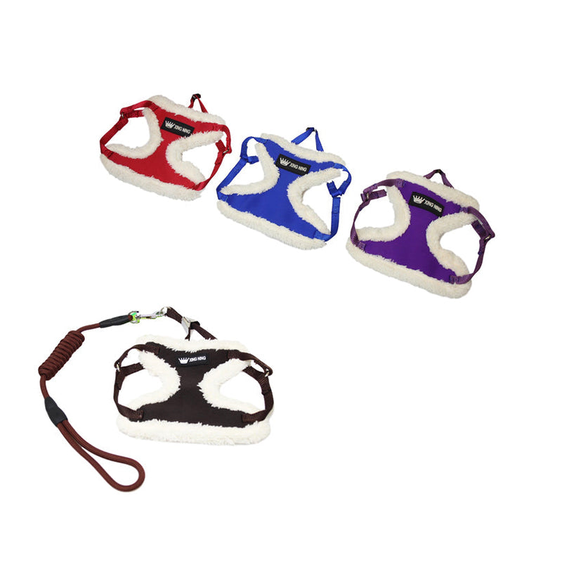 Fluffy Small Dog Harness with Lead Leash 22 x 16 cm Assorted Sizes - Random Colour.