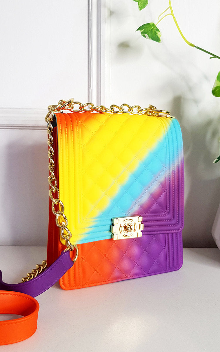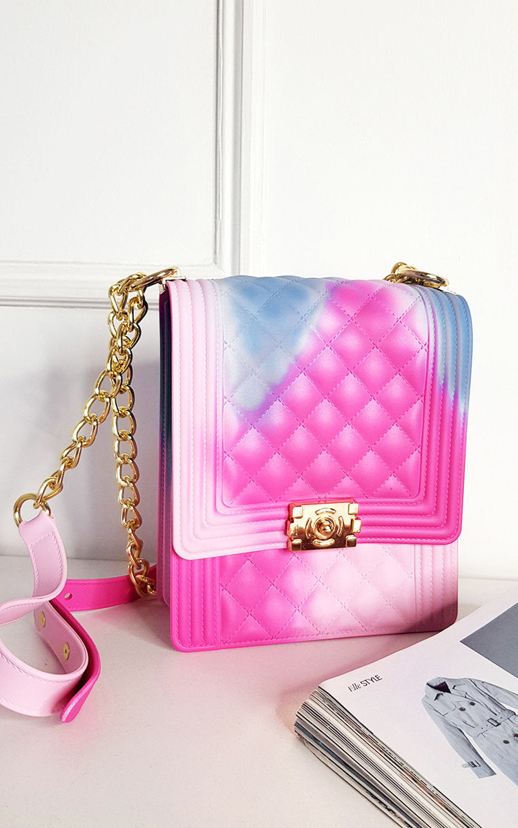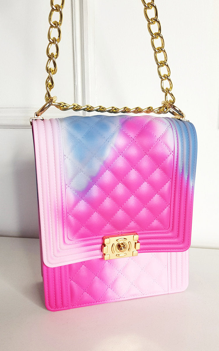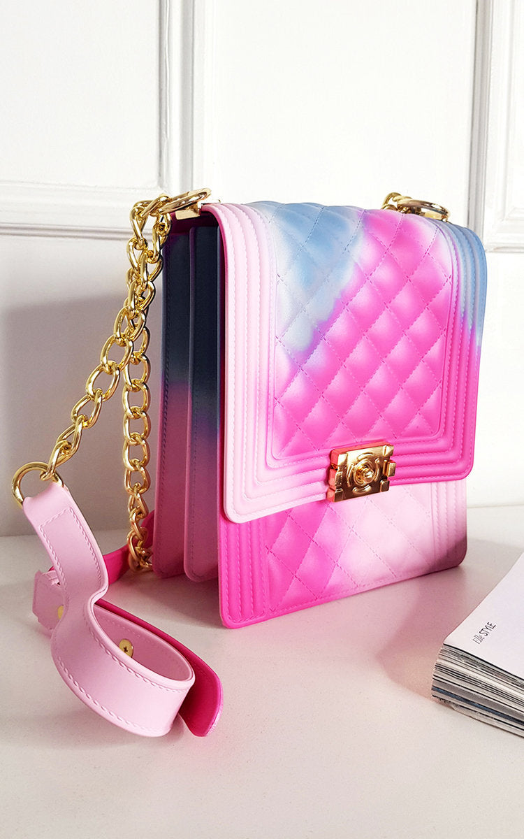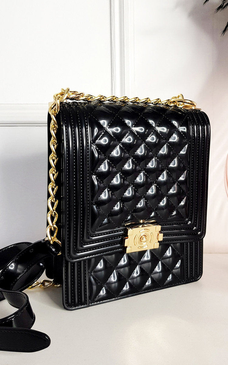 The Jenna bag is the perfect mix of soft and edgy. It features an all over smooth, beautifully textured faux leather with a chain strap finish for that show stopping evening look. The fold-over clasp lends to the femininity of this bag that you will find can’t be beat!