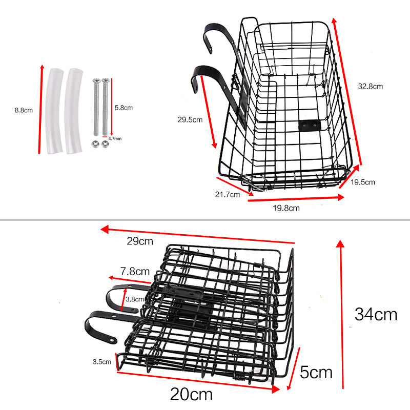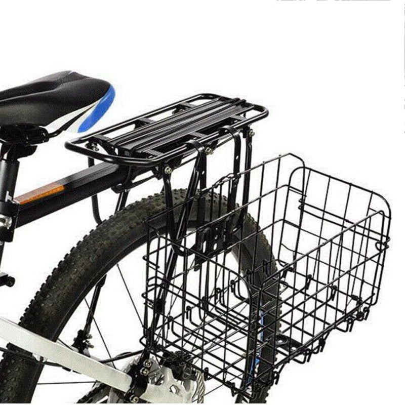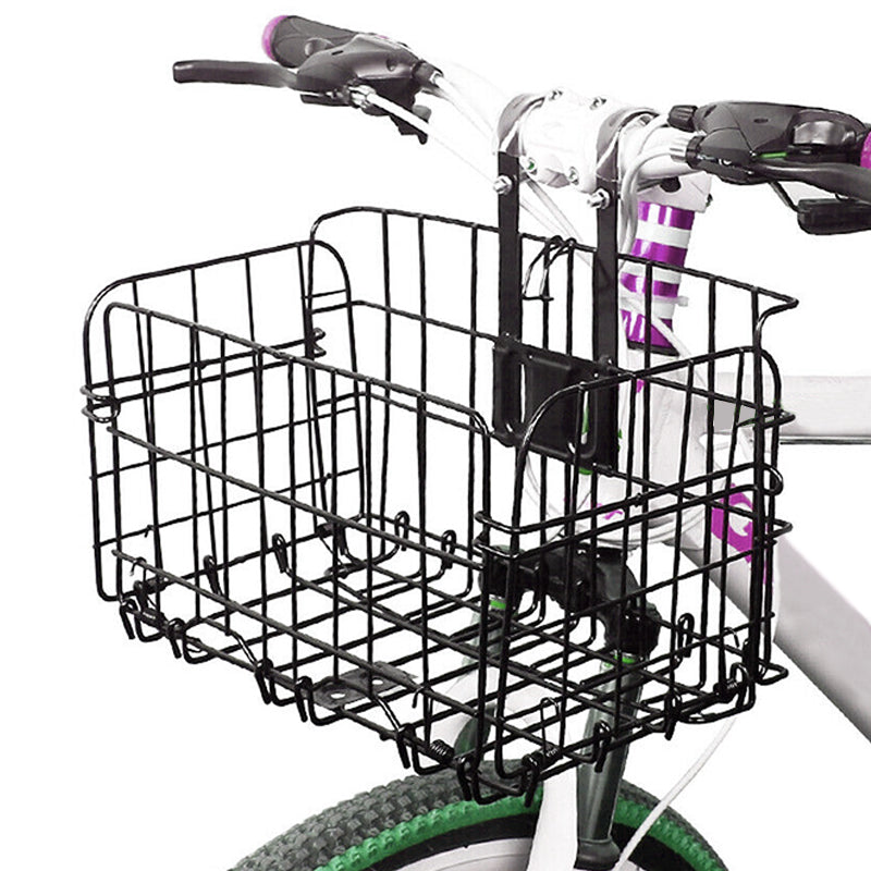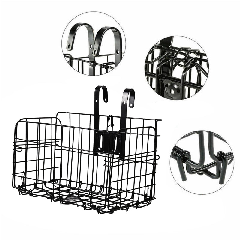 Foldable Bike Front Rear Basket Metal Bicycle Handlebar Shopping Carrier for Cycling - Black.
