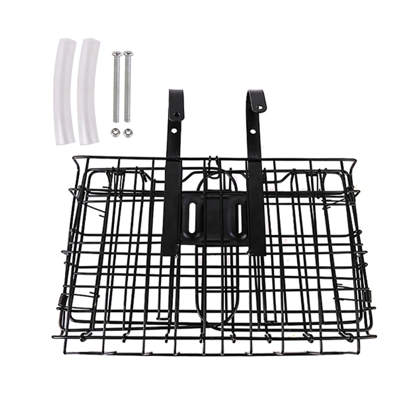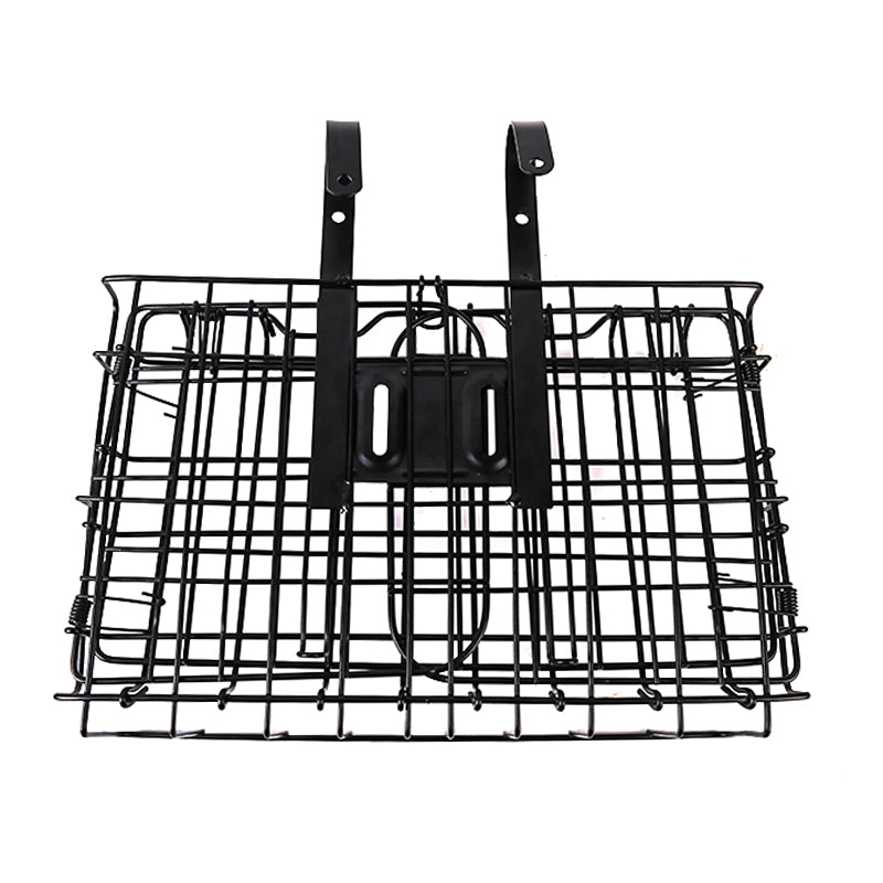 Foldable Bike Front Rear Basket Metal Bicycle Handlebar Shopping Carrier for Cycling - Black