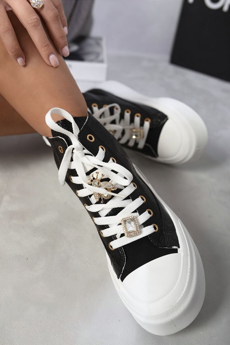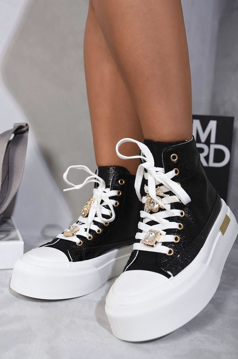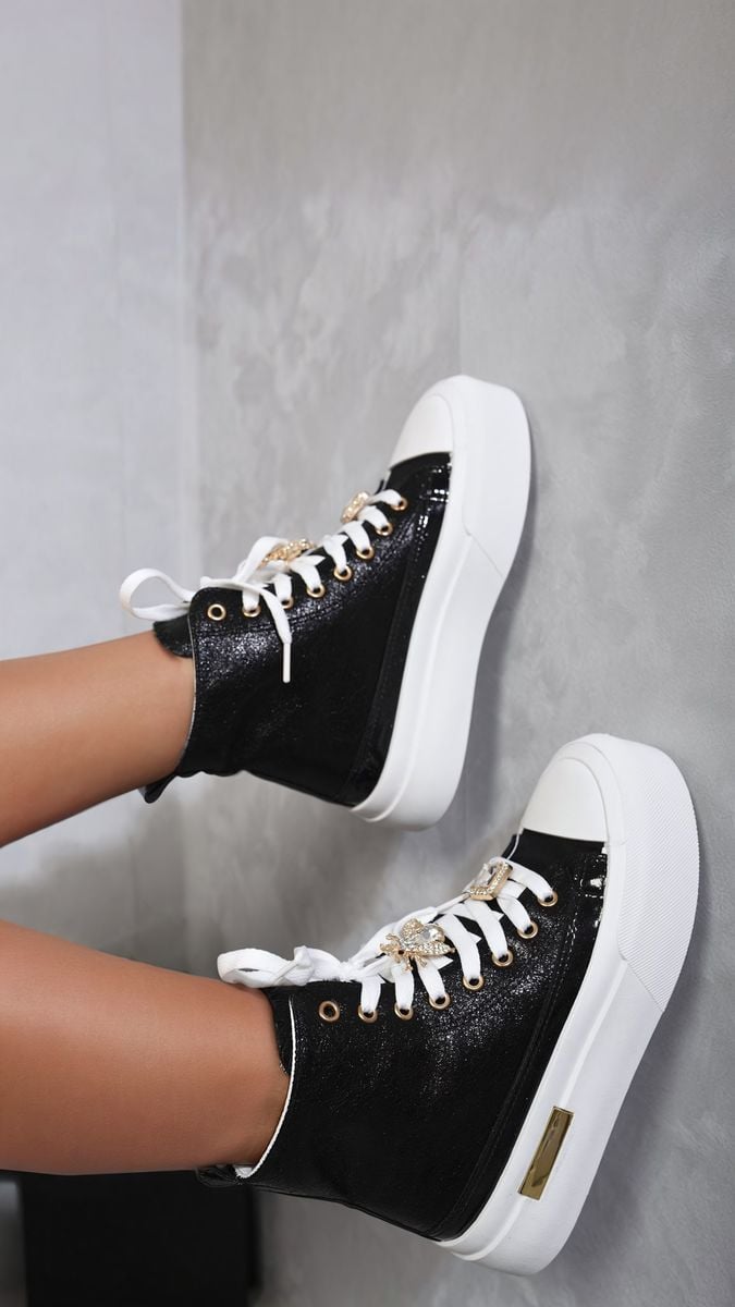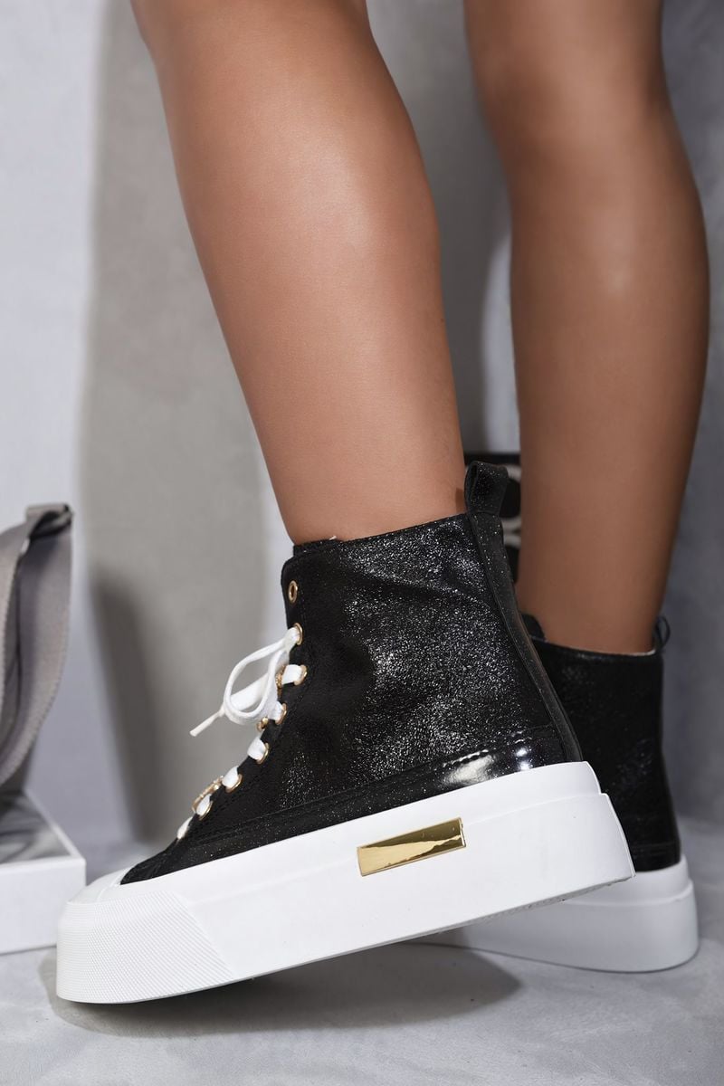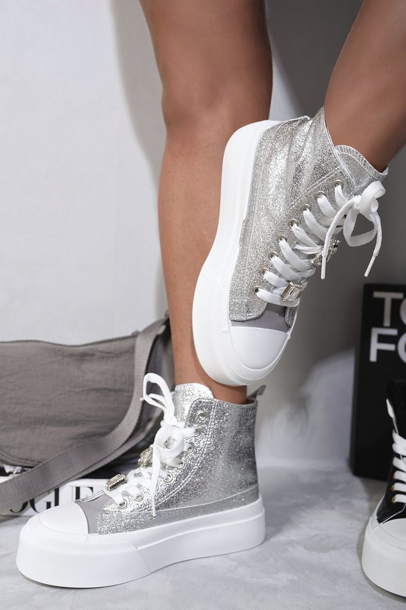 Glitter Lace Up High Top Platform Trainers with Decorative Details