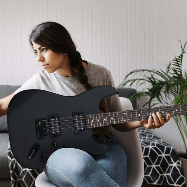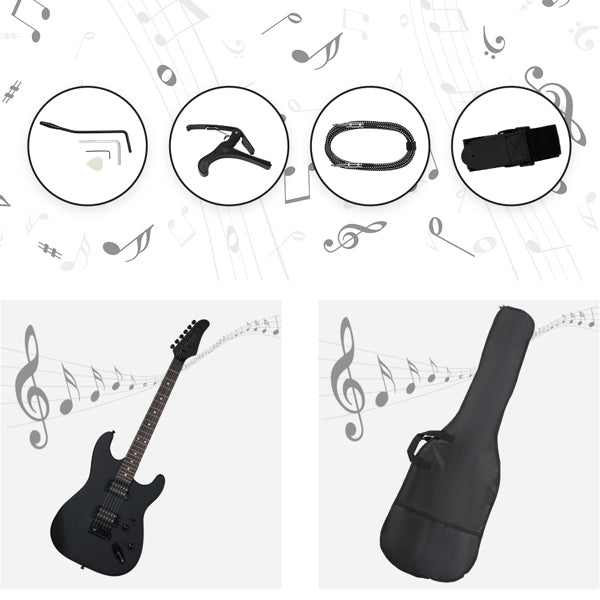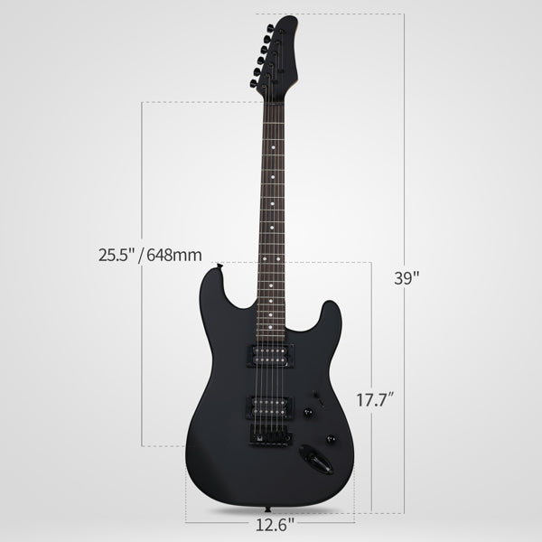 GST 39in Electric Guitar H-H Pickups Black suit for Heavier Rock