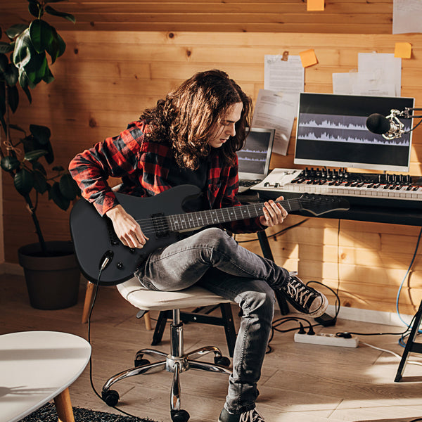 The GST 39in electric guitar features a classic C-shaped maple neck and 22 nickel-bronze pins for a great audio experience with comfortable feel and standard tone.