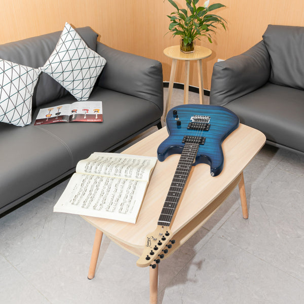 GST Stylish H-H Pickup Tiger Stripe Electric Guitar Kit with 20W AMP Bag Guitar Strap Blue