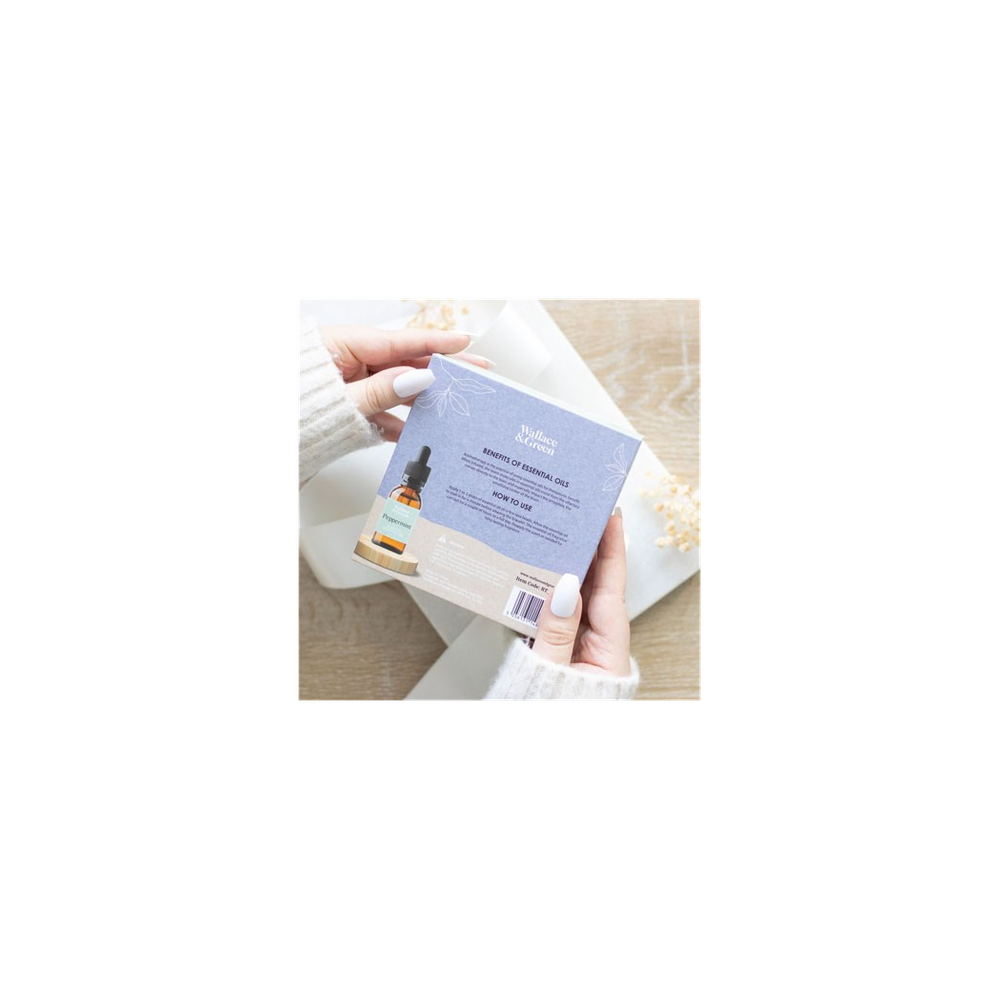 This inner peace lava bead bracelet and essential oil gift set uses aromatherapy to enhance the metaphysical healing power of crystals. Crafted with natural blue lace agate and lava beads, the bracelet serves as a diffuser for the included peppermint oil, promoting stress reduction and boosting energy. The addition of the tree of life charm symbolises growth and harmony, offers tranquility and serenity on the go. Crafted with durable materials and packaged in a luxury gift box, this elasticated bracelet combines beauty and functionality, offering a thoughtful present for various occasions.