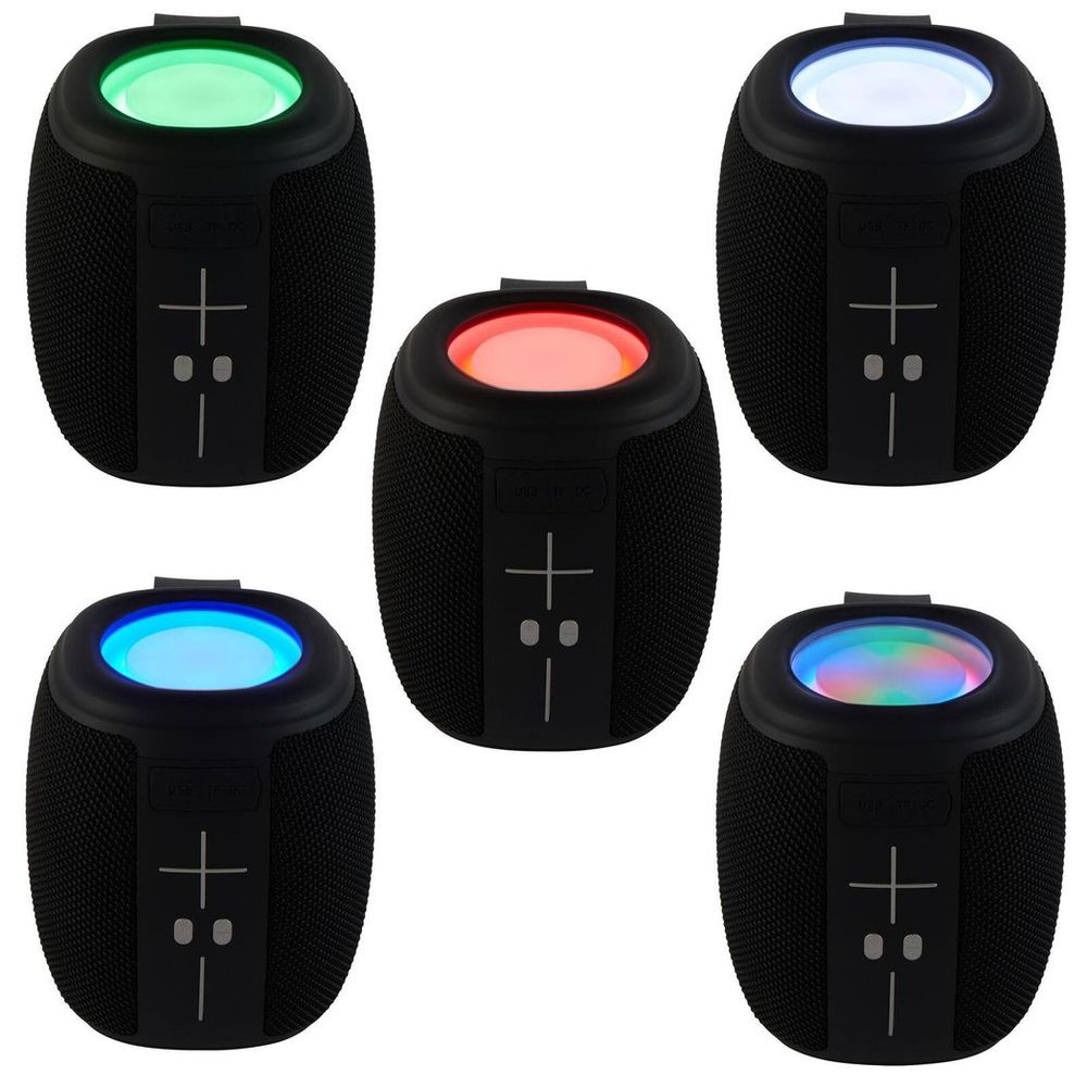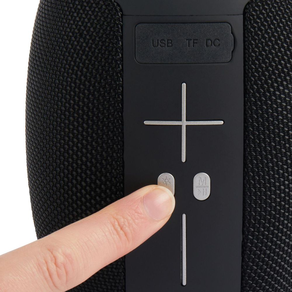 - The Intempo LED fabric speaker is designed with a 5 W power output and a soft-touch control panel for easy operation.