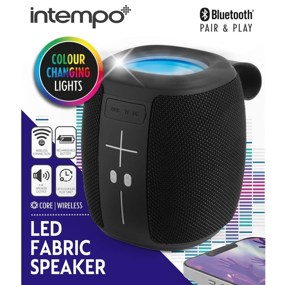 - Perfect for any music enthusiast, the Intempo LED speaker is finished with a modern fabric design to add a touch of style to any room.