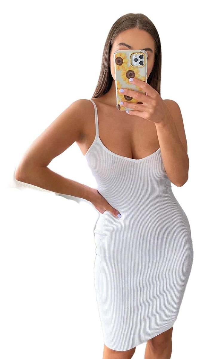 Our ZURI dress features a knitted material, spaghetti straps with bodycon fit with mini length. Team with barely there heels for the perfect day to night look.
