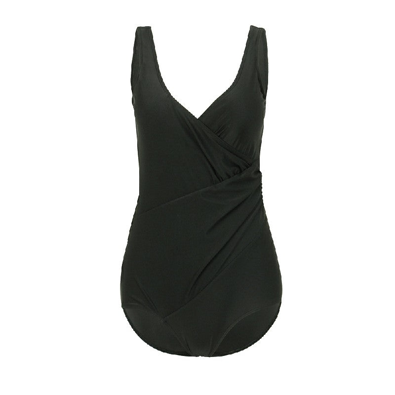 Lady Tummy Control Swimming Costume One Piece Bathing Swimwear Swimsuit - Black.