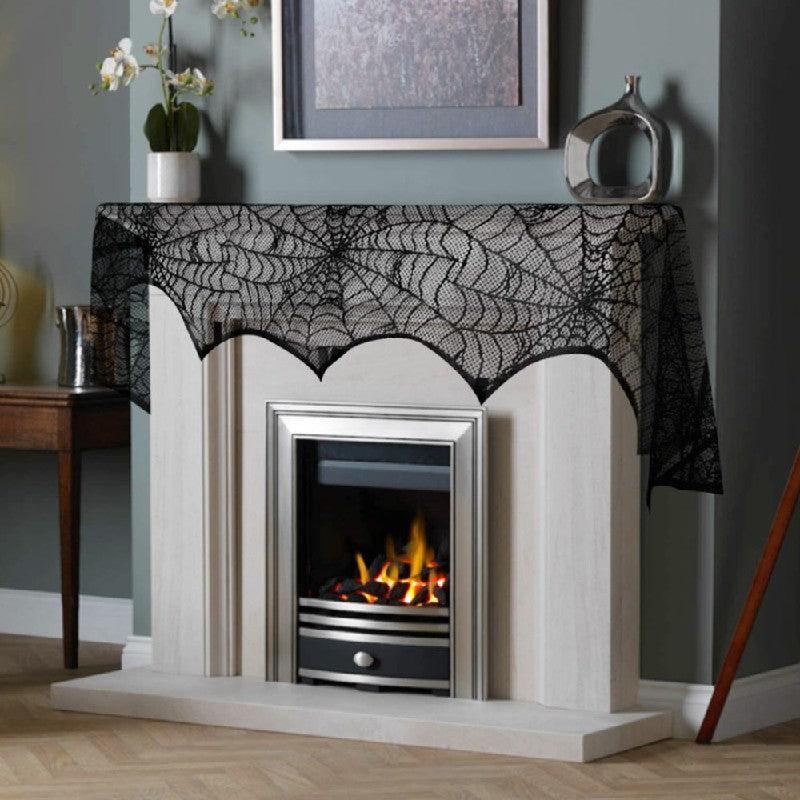 Large Black Lace Spider Cloth Design Halloween Fancy Dress Party Decoration.