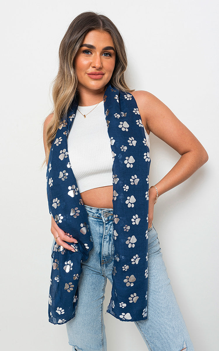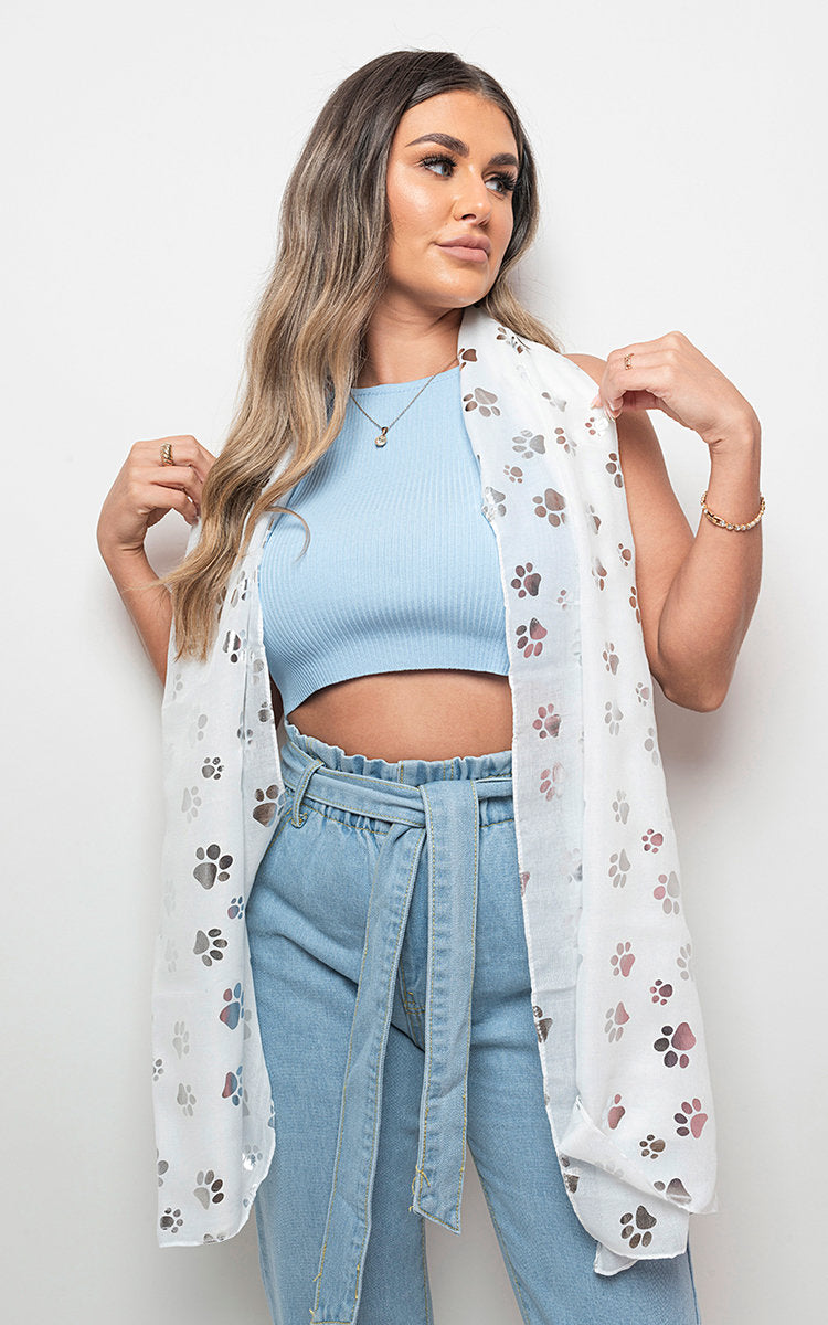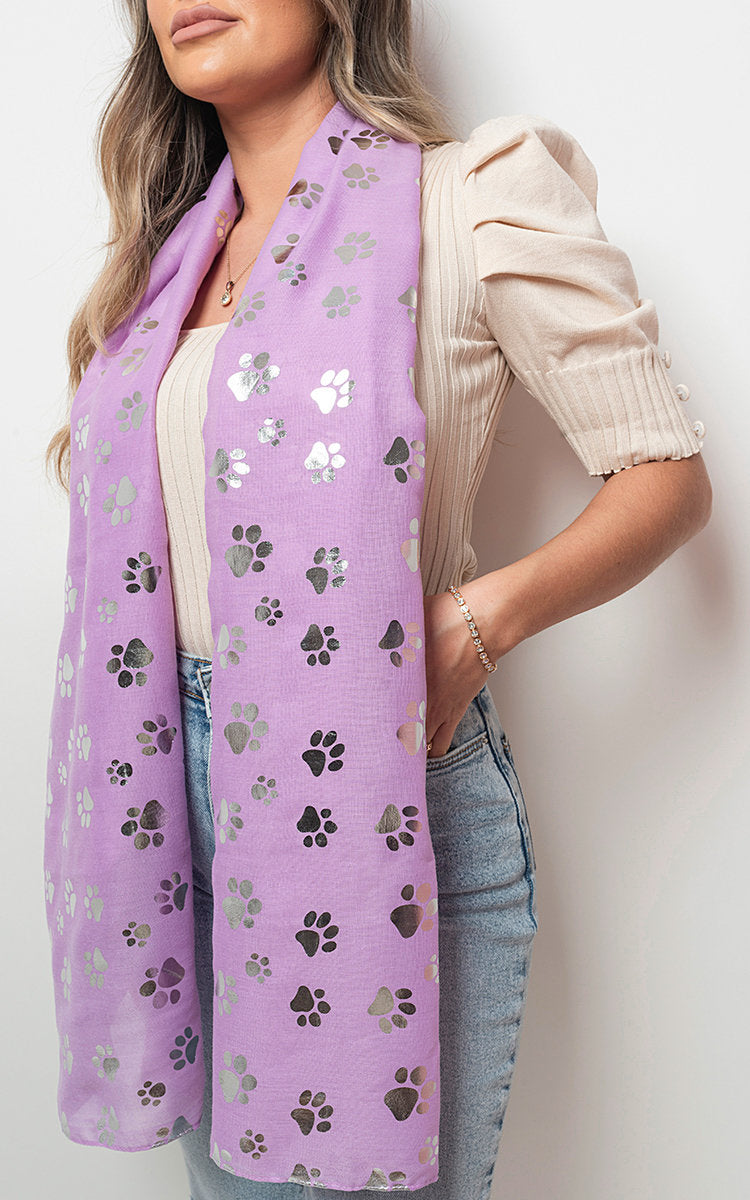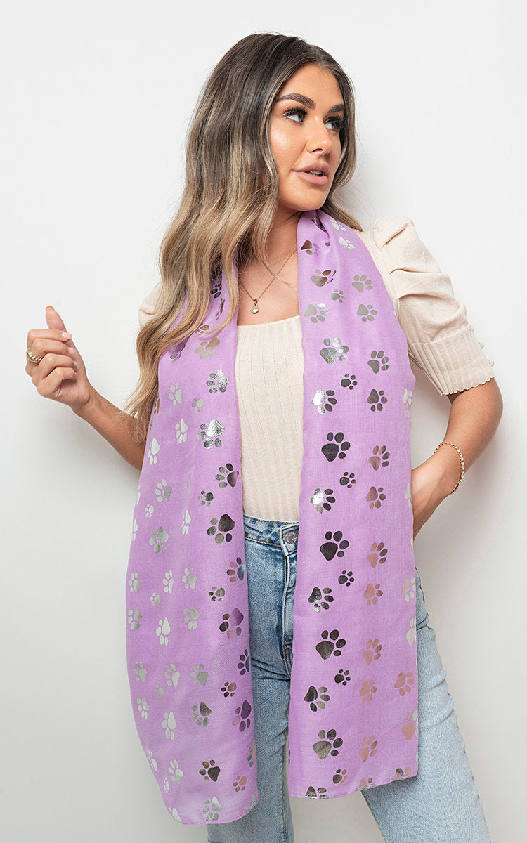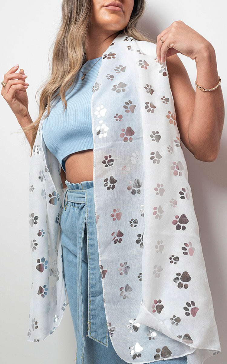 Unleash your inner animal lover with the Remi Lightweight Wrap Scarf Silver Sparkle Foil Paw's! ??