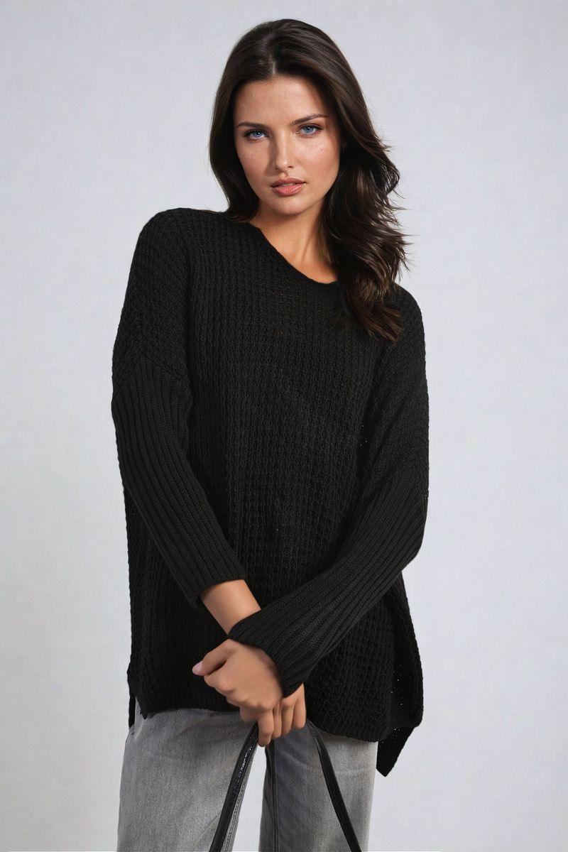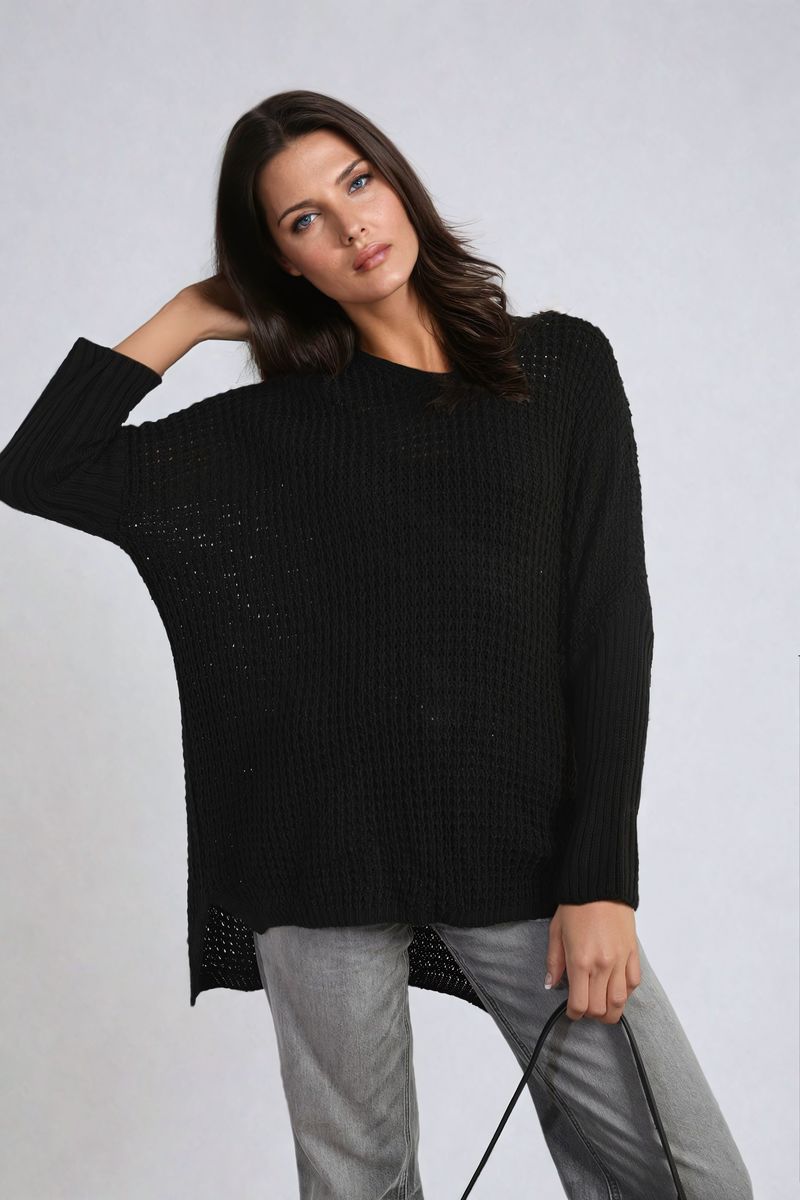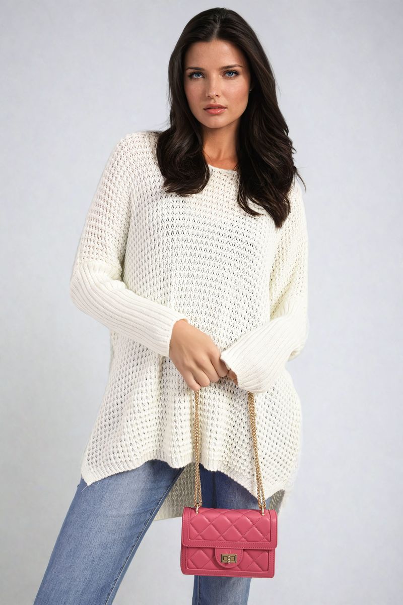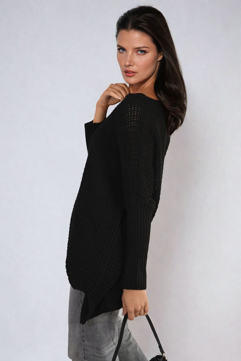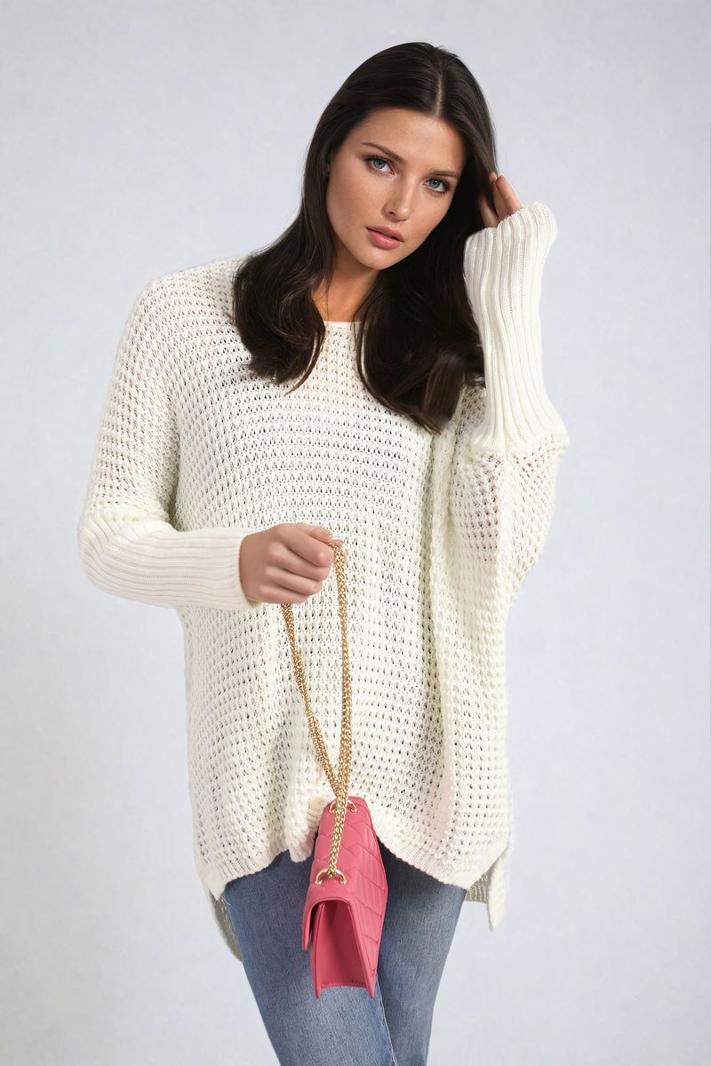Snuggle up in style with the Phoebe Long Back Knitted Long Sleeve Jumper. This soft and cozy jumper is perfect for those chilly days when you want to stay warm and look great. Its unique long back design adds a trendy touch to your outfit, making it a fantastic choice for layering or wearing solo. Ideal for casual outings, it's your go-to for effortless comfort and chic vibes.