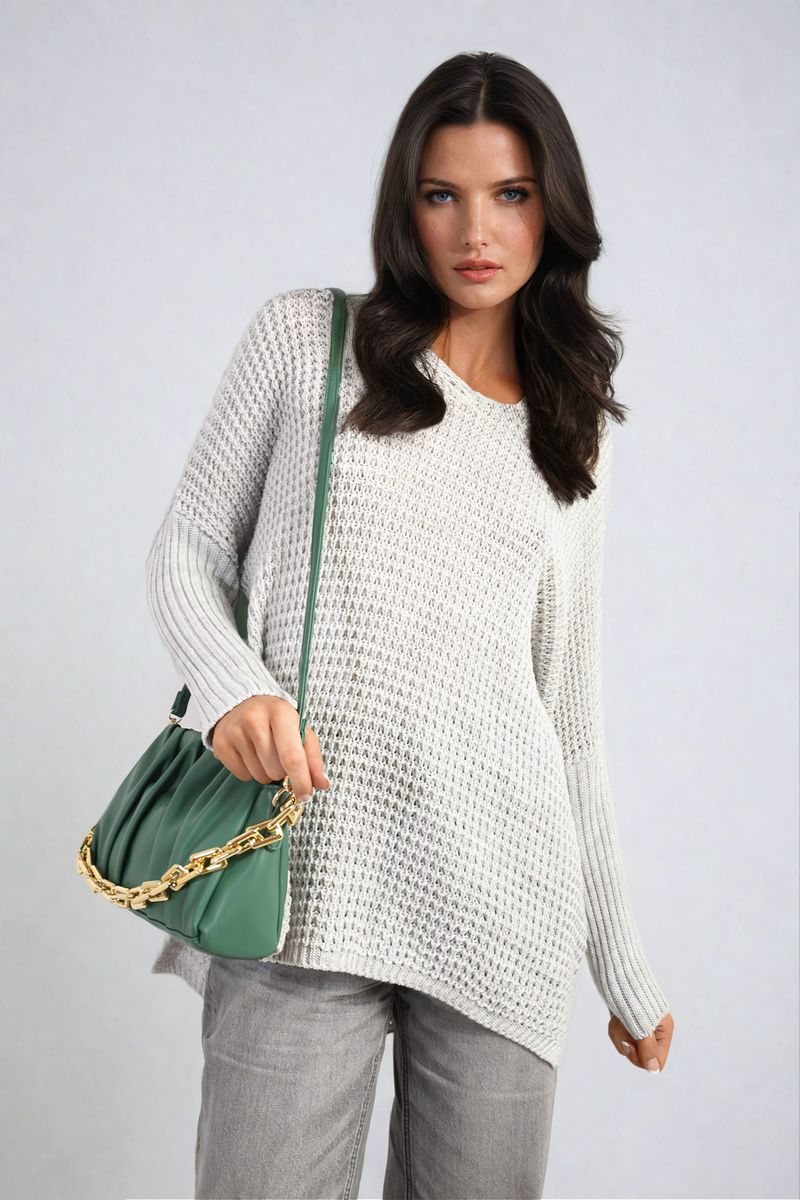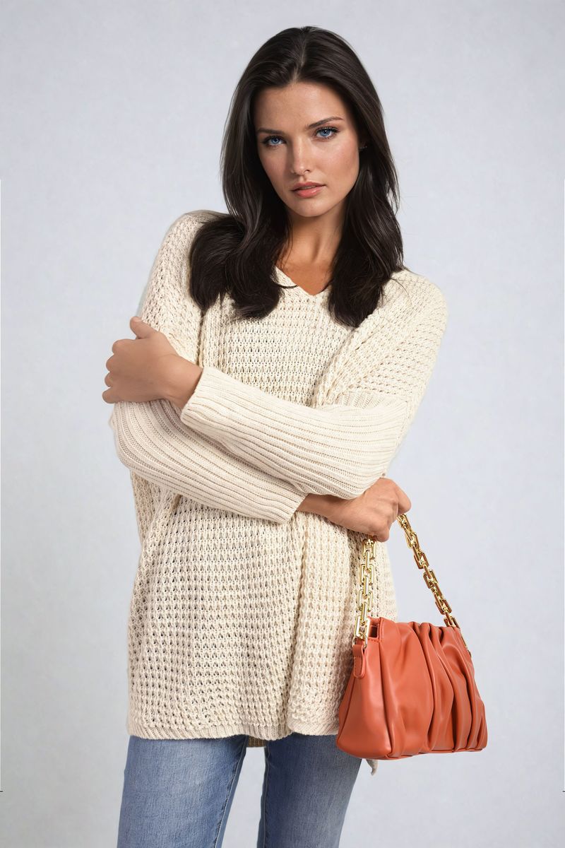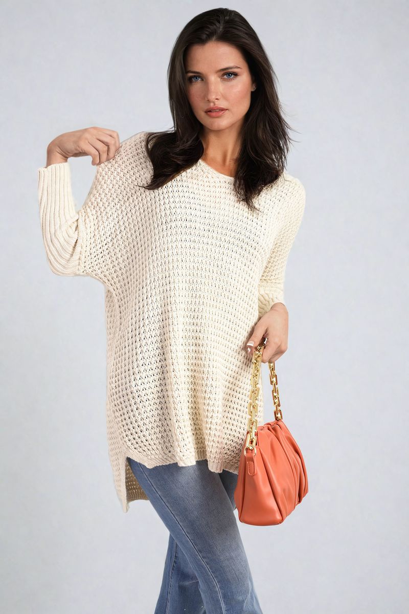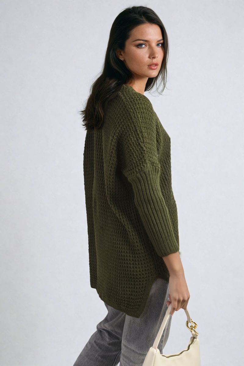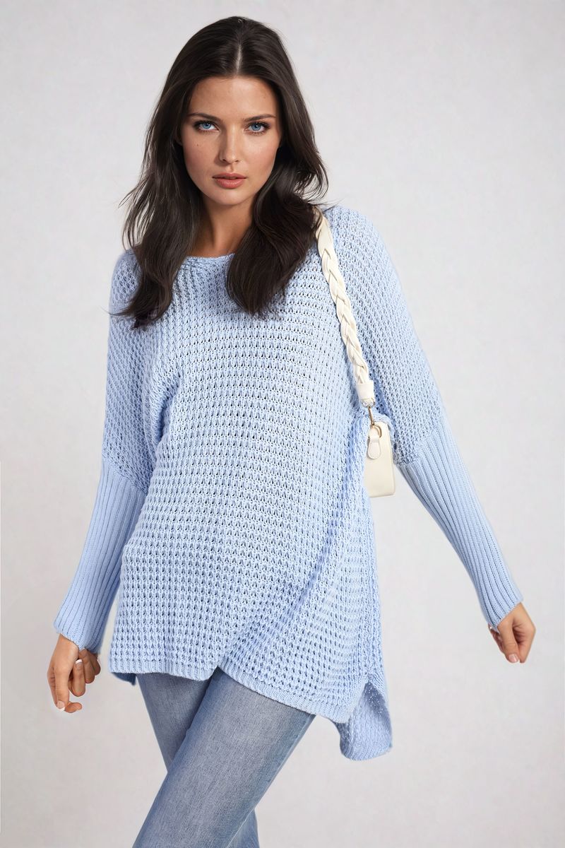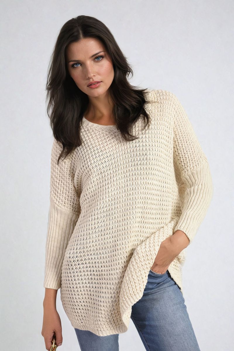 Snuggle up in style with the Phoebe Long Back Knitted Long Sleeve Jumper. This soft and cozy jumper is perfect for those chilly days when you want to stay warm and look great. Its unique long back design adds a trendy touch to your outfit, making it a fantastic choice for layering or wearing solo. Ideal for casual outings, it's your go-to for effortless comfort and chic vibes.