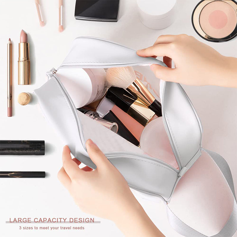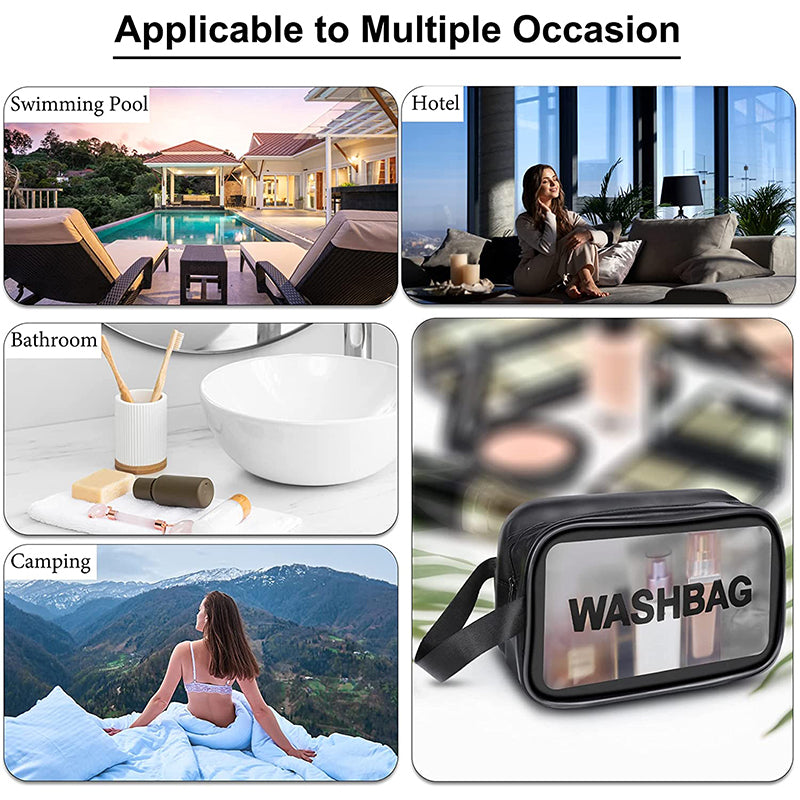 Translucent Waterproof Travel Makeup Bag with Strap Cosmetic Bag Wash Bag White Black