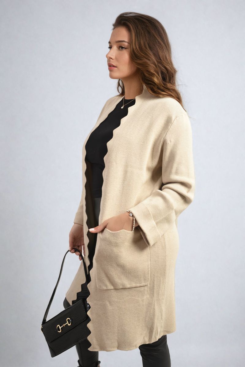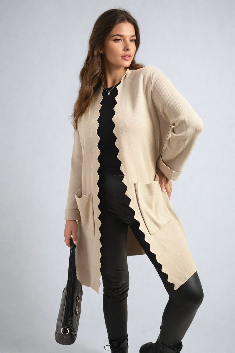Say hello to the Betty Wave Trim Knitted Cardigan, your cozy yet stylish new fave! With its cute wave trim and practical front pockets, this cardigan is perfect for keeping you warm and chic. Whether you're out and about or just chilling at home, it's the ideal piece to add flair and comfort to your wardrobe.