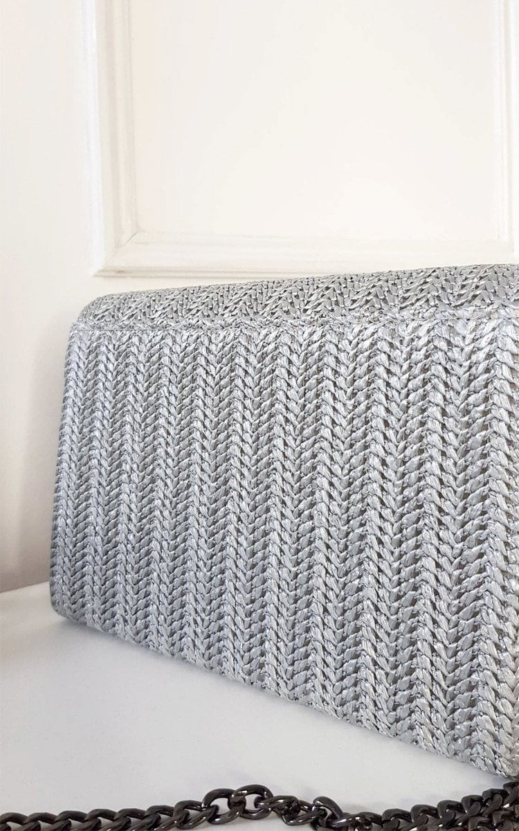 Add this little beaut to your bag collection! Featuring wicker material with front clip and long chain strap. This super chic bag will finish off any outfit!